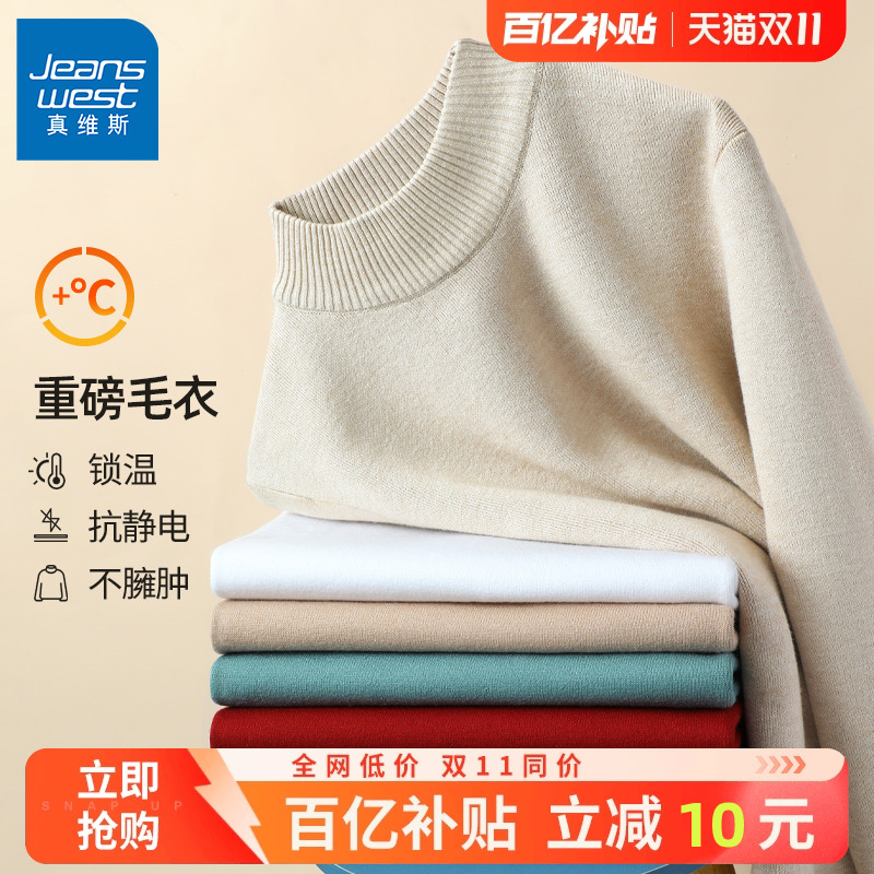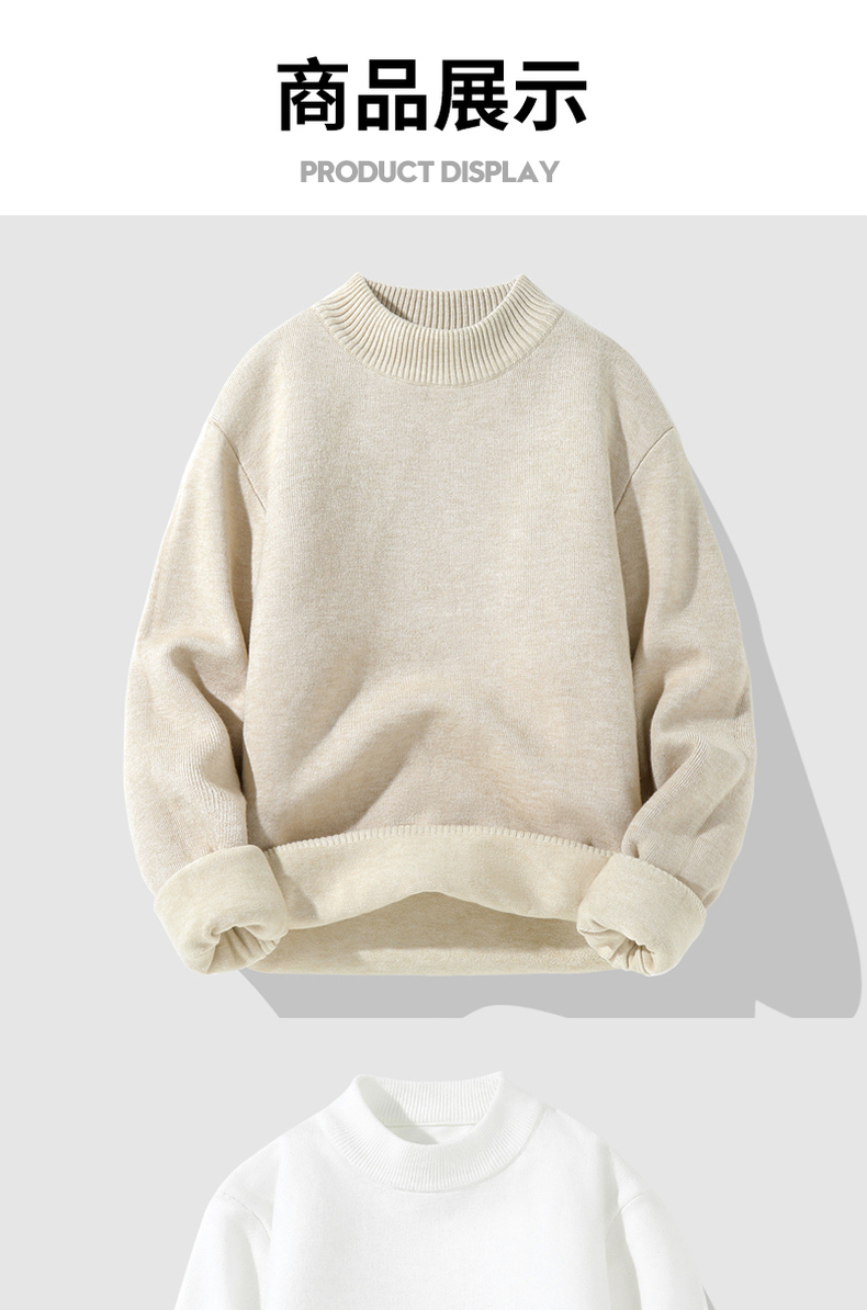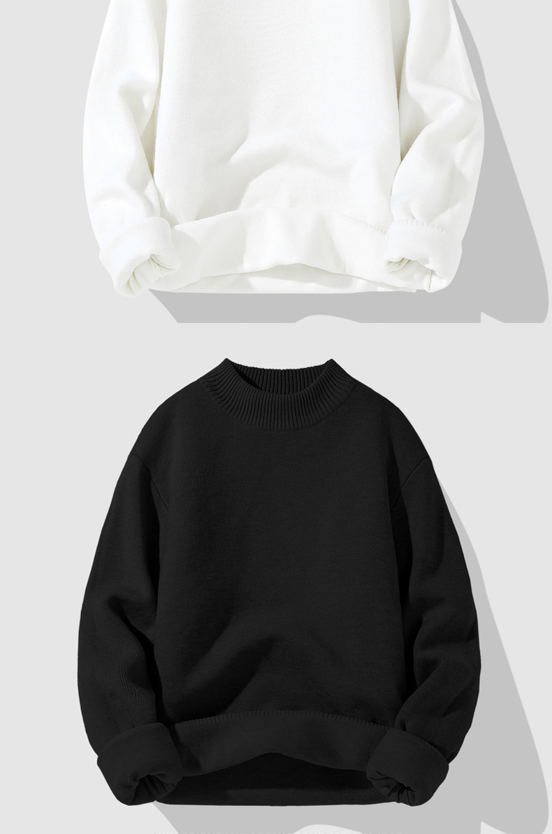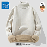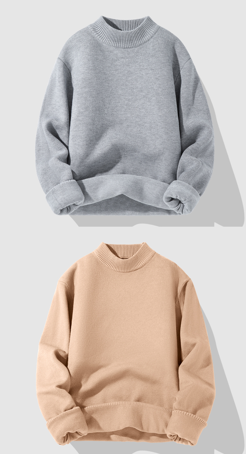 Мужской демисезонный зимний трикотажный утепленный шерстяной свитер, высокий воротник