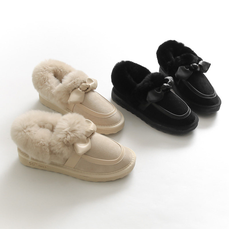 T727 цельные меховые зимние ботинки для женщин, короткая трубка, милые, бархатные, с толстой подошвой, теплые хлопковые туфли с бантом, новый зимний стиль