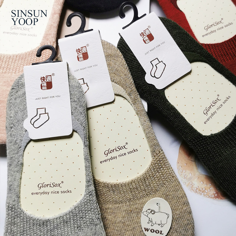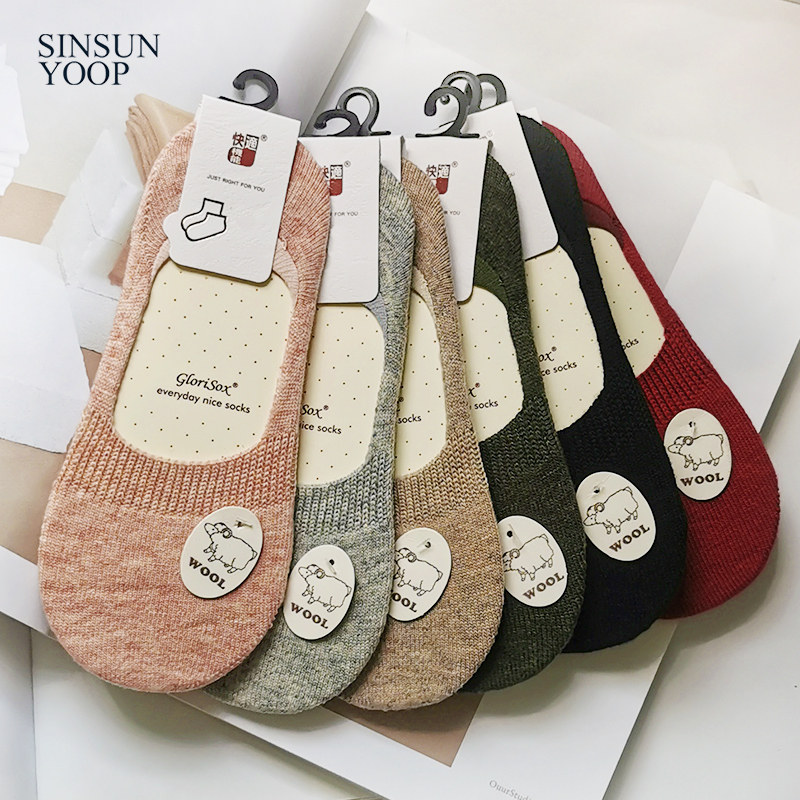 Женские шерстяные носки-лодочки, кашемировые теплые невидимые носки, зимние нескользящие силиконовые суперкороткие носки, утолщенные теплые носки-лодочки с мелким горлышком