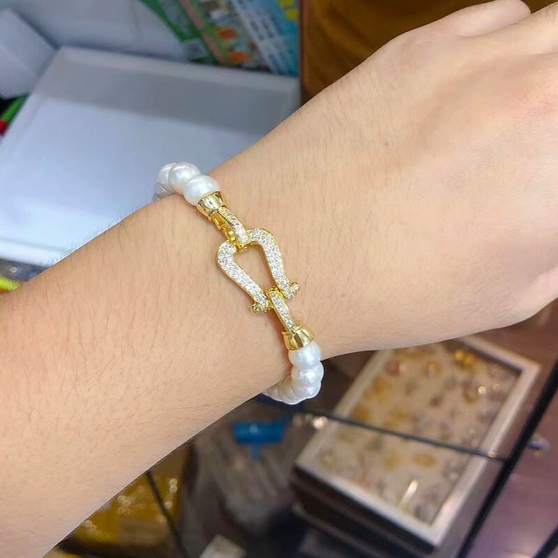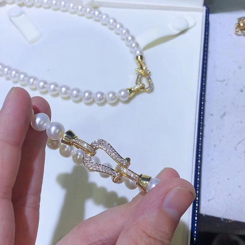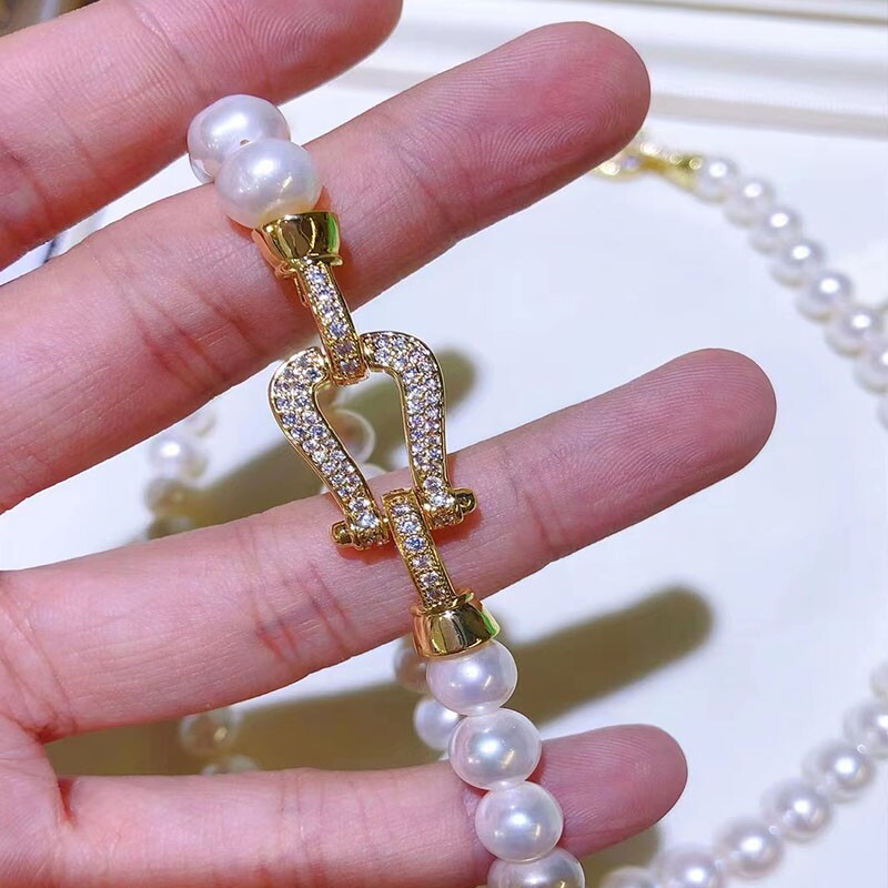 Аксессуары «сделай сам», полусеребряная пряжка в форме подковы 925, персонализированный модный свитер, однорядное ожерелье с жемчугом, нанизанное вручную, на пуговицах вручную