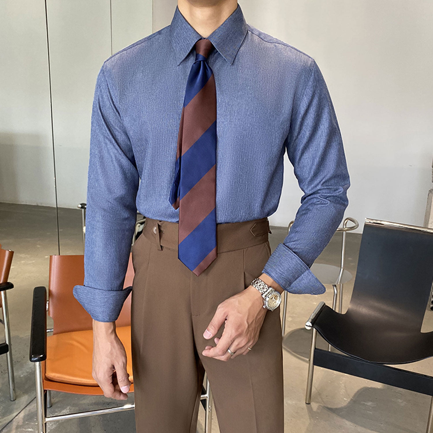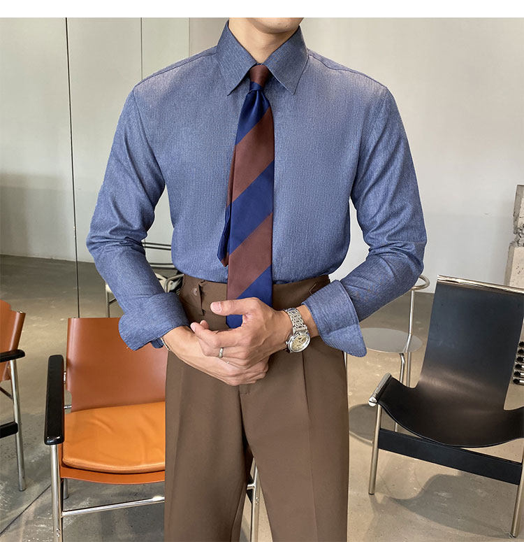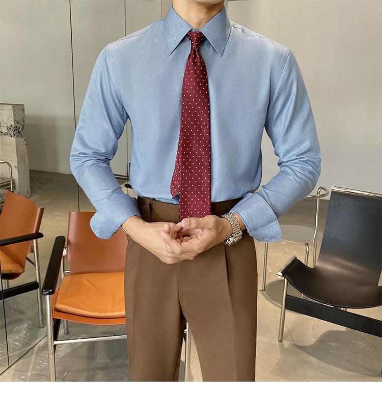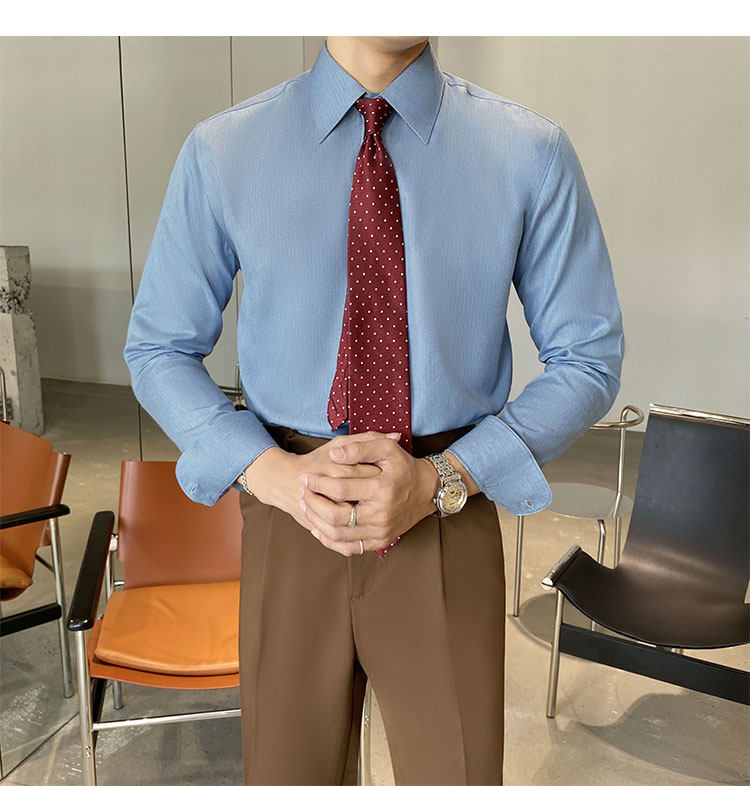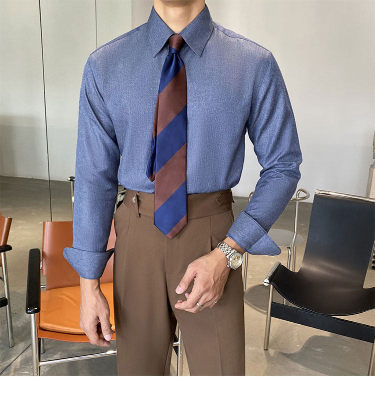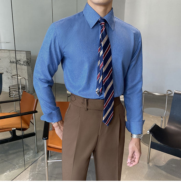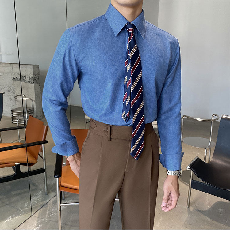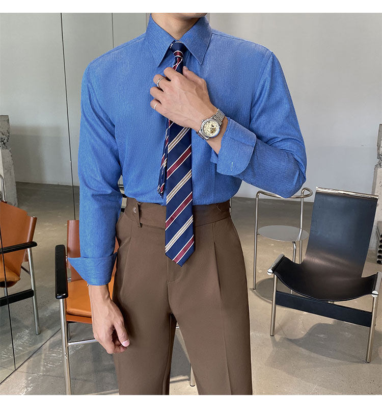 Синяя рубашка, пиджак классического кроя, коллекция 2022, облегающий крой