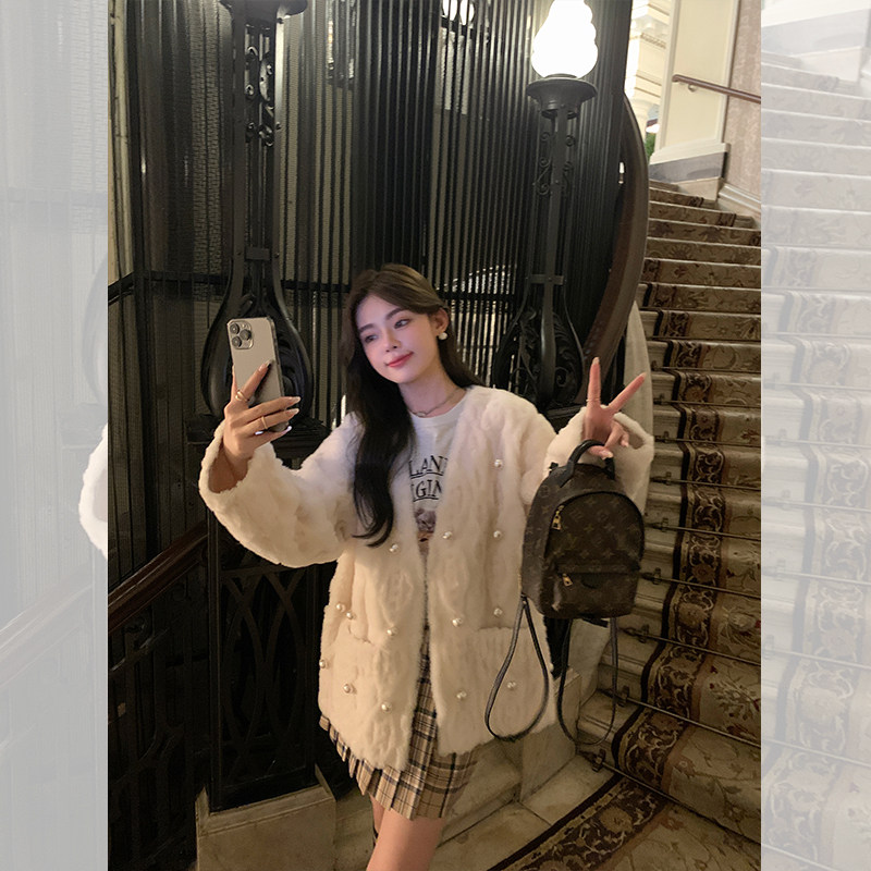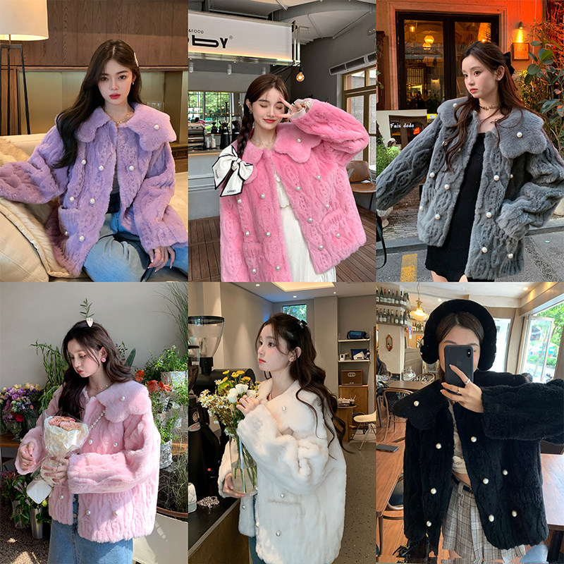 Dearhua Xiaohua's "Twist Seven Generations" 100 All -Wool Lamb Foreign Set Женский свиток мех зима