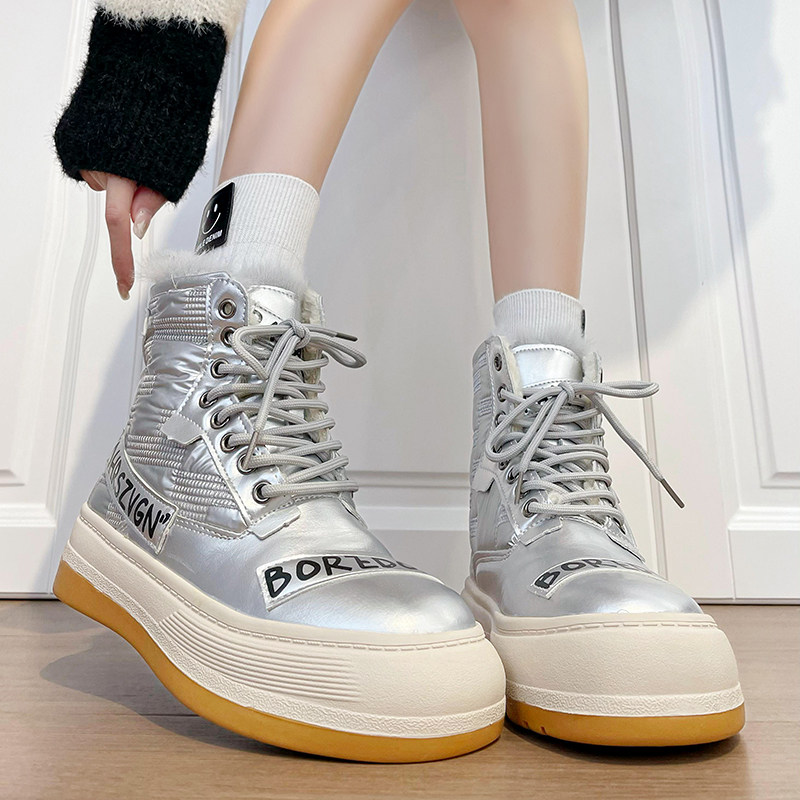 Martens, серебряные высокие утепленные сапоги на платформе, популярно в интернете, коллекция 2022, подходит для подростков
