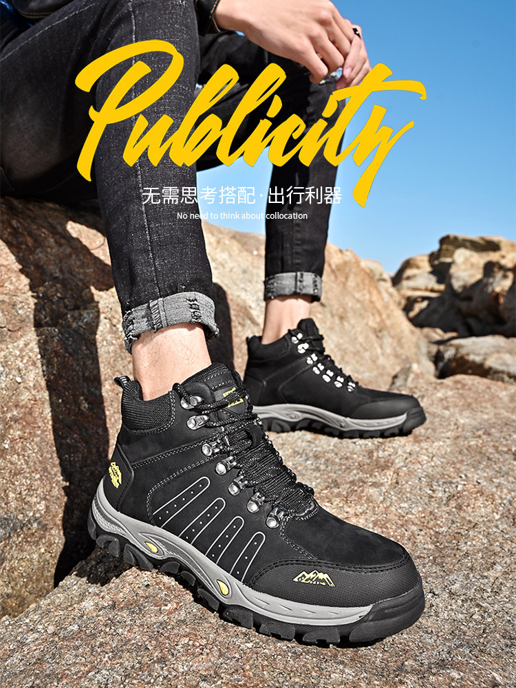 Западная верблюжья походная обувь, мужская зимняя обувь из натуральной кожи с высоким берцем, водонепроницаемая, нескользящая, износостойкая, на толстой подошве, спортивная походная обувь для мужчин на открытом воздухе