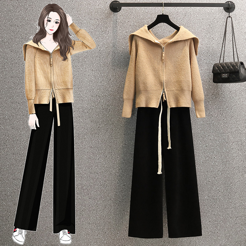Цветной удерживающий тепло кардиган, лонгслив, свитер, демисезонные штаны, большой размер, оверсайз, высокая талия