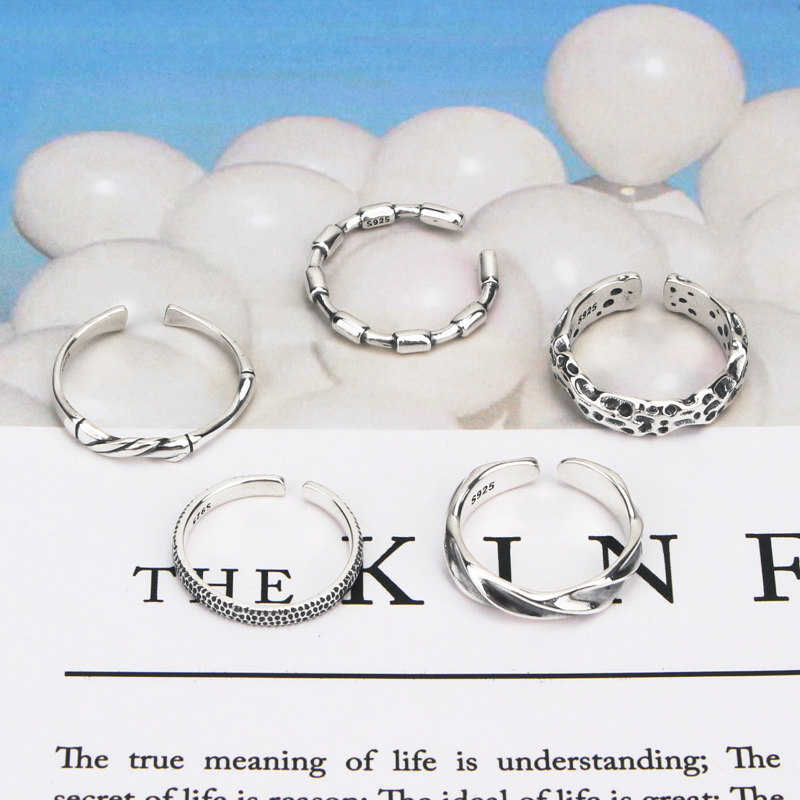 Небольшое дизайнерское безразмерное универсальное кольцо с косичкой, ретро луна, серебро 925 пробы, в корейском стиле