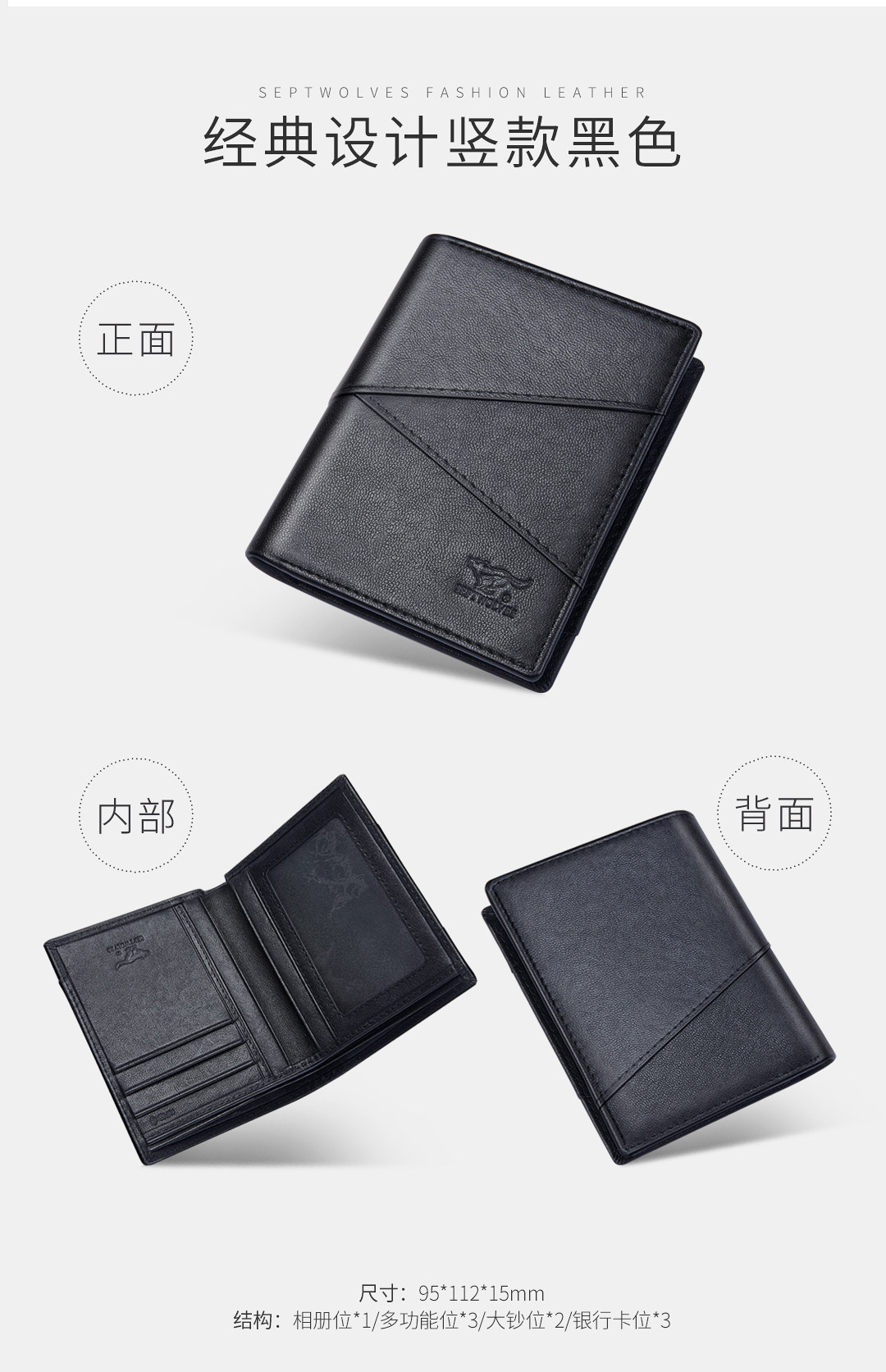 Septwolves, короткий бумажник, кошелек, из натуральной кожи, подарок на день рождения