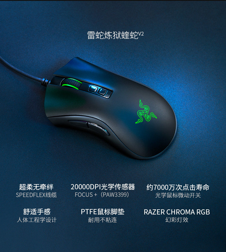 Razer Razer Purgically Purgically Viper Standard Gaming Mouse E -Sports Wired