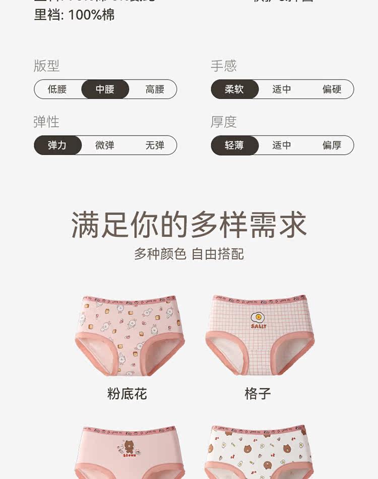 Мультяшное нижнее белье, хлопковые антибактериальные штаны, дышащие шорты, средняя посадка