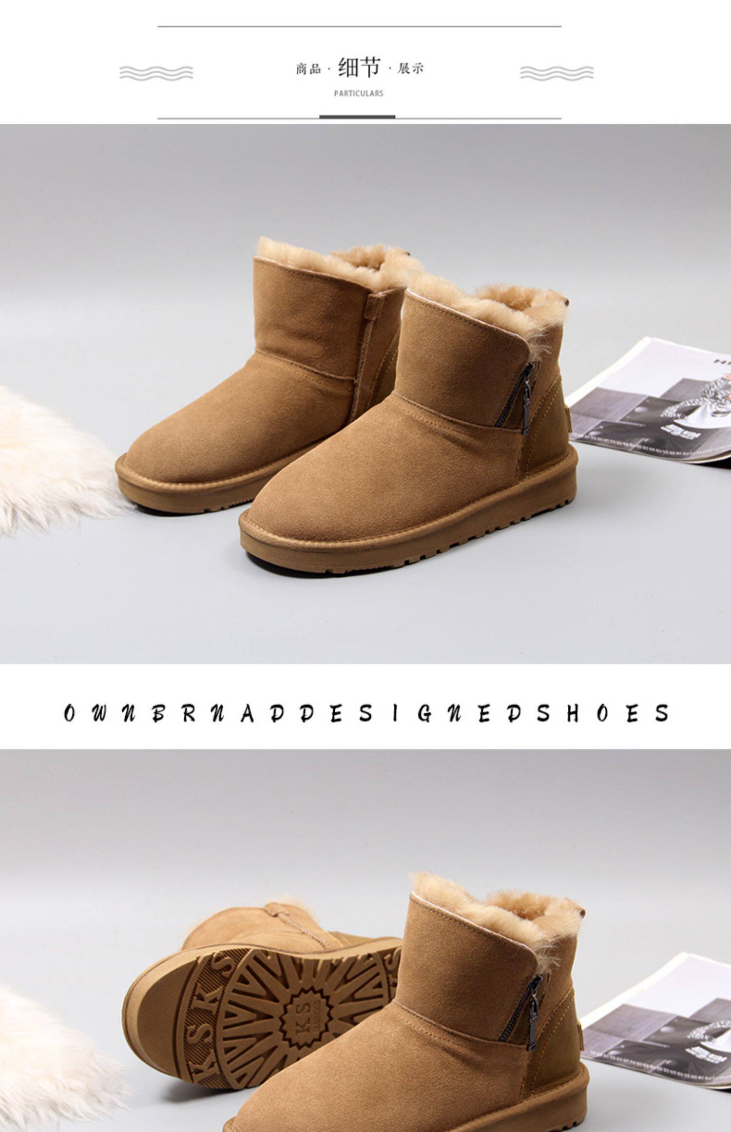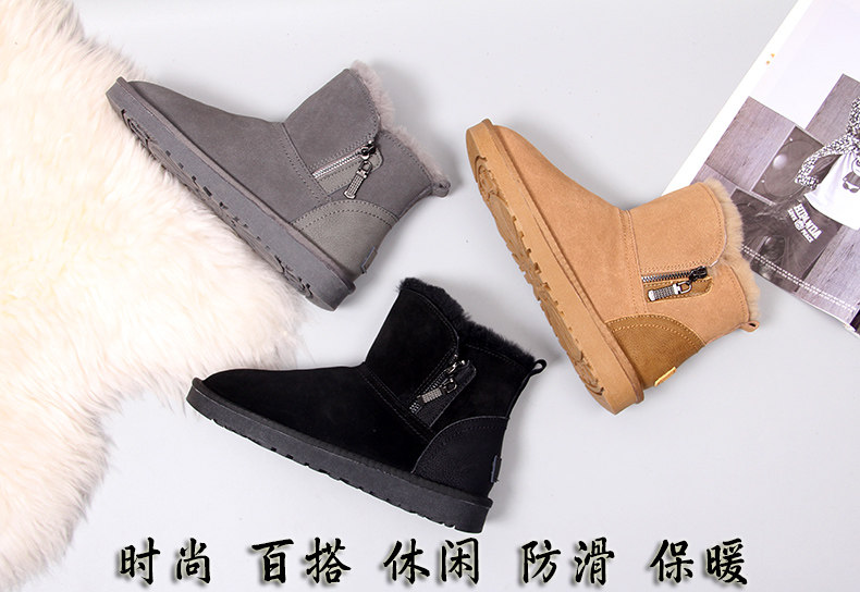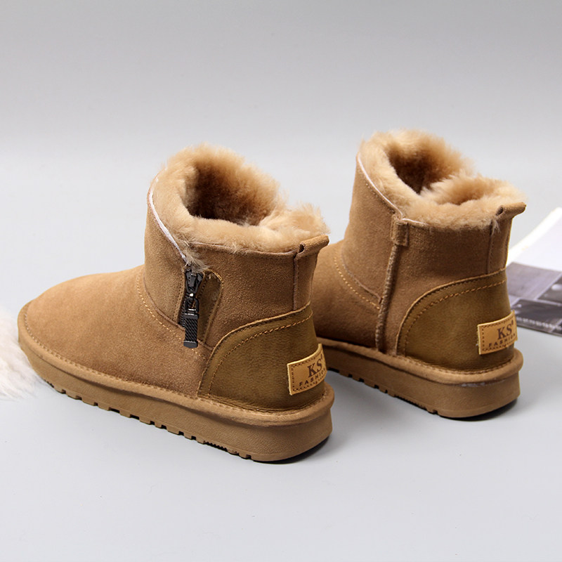 Нескользящие утепленные кожаные зимние короткие сапоги, коллекция 2023, из натуральной кожи
