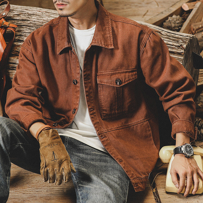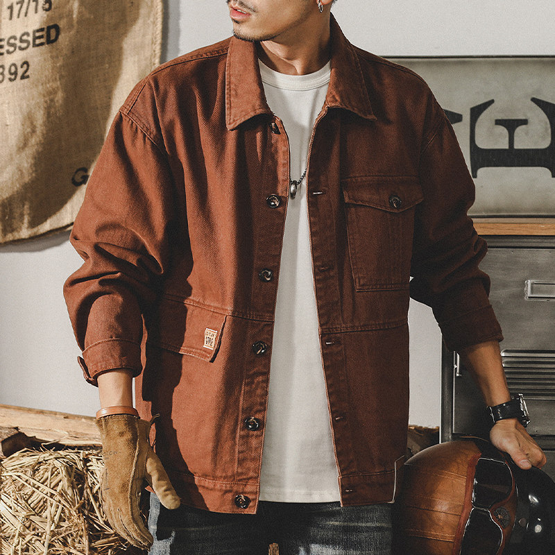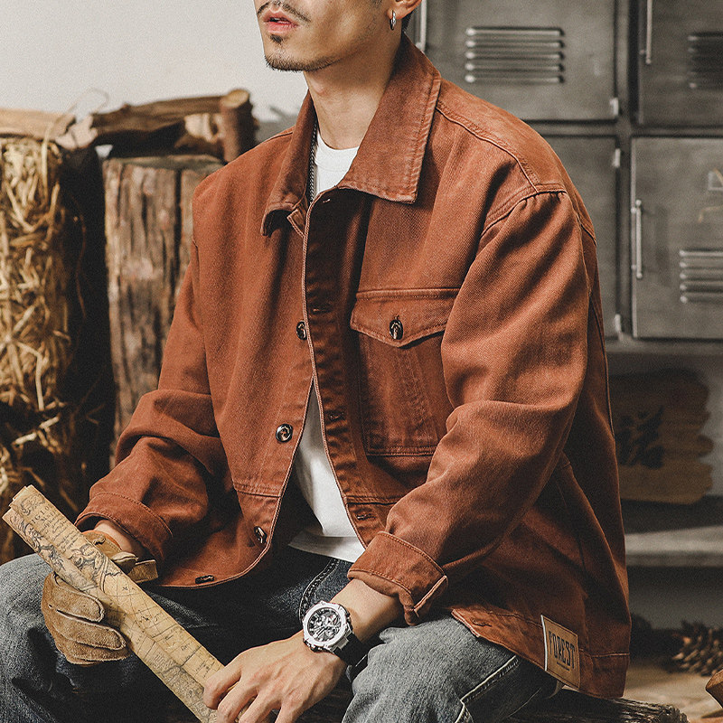 Хлопковая ретро мужская осенняя трендовая куртка для отдыха, в американском стиле, оверсайз
