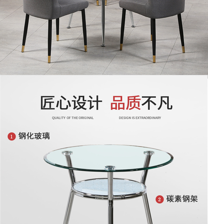 Стальное стекло Переговоры о небольшом столевом столе приема бизнеса двойной слой Light Luxury Home Nordic Гостевой молочный чайный столик и комбинация стула