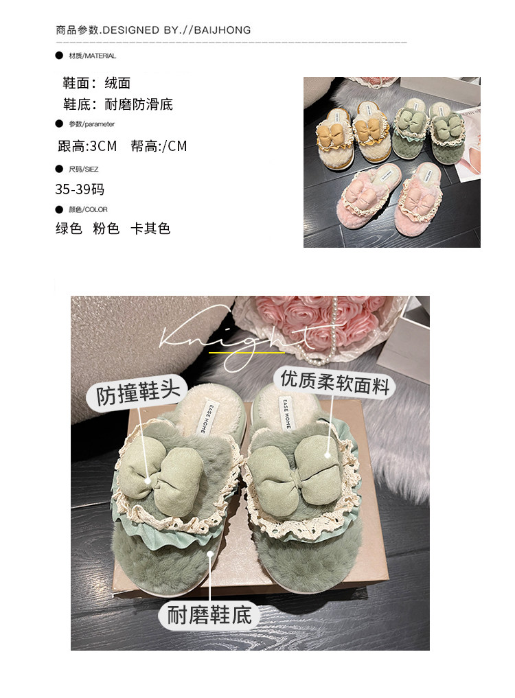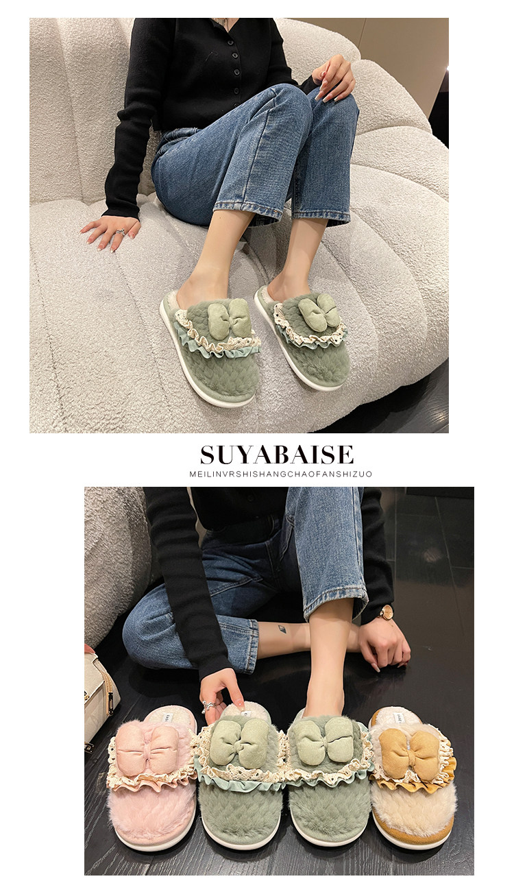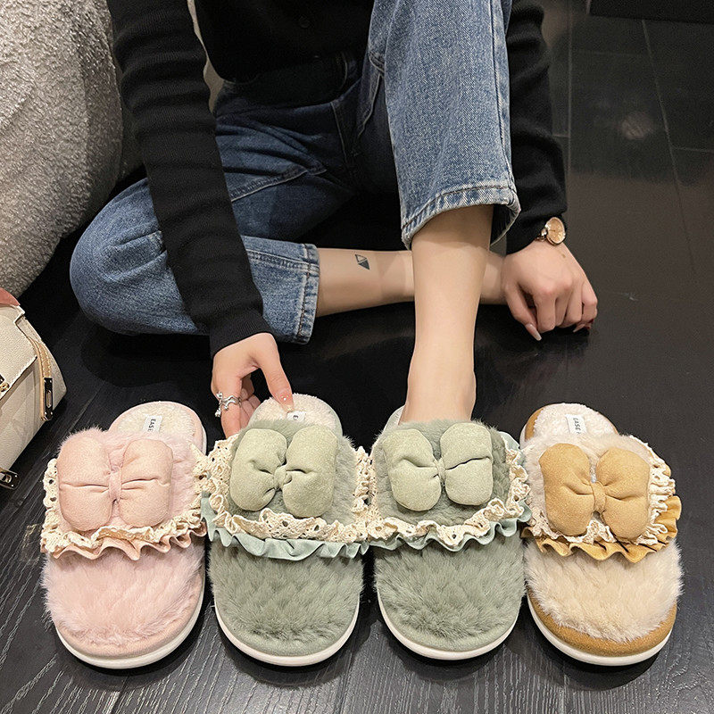 Зимние утепленные удерживающие тепло тапочки с бантиком, 2023