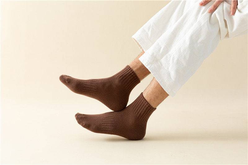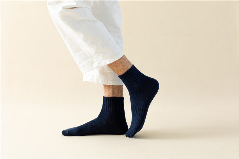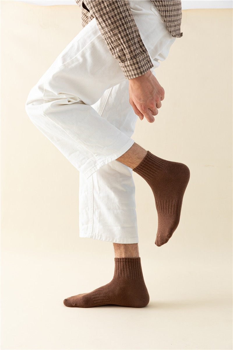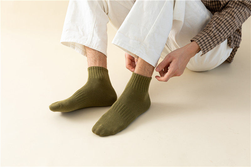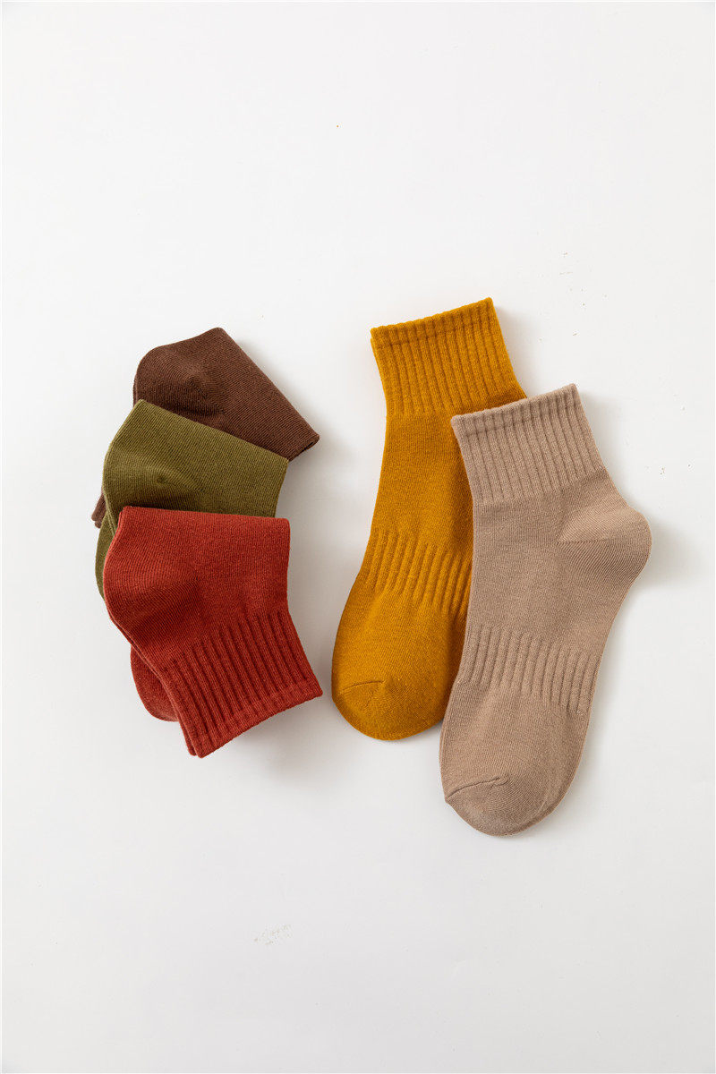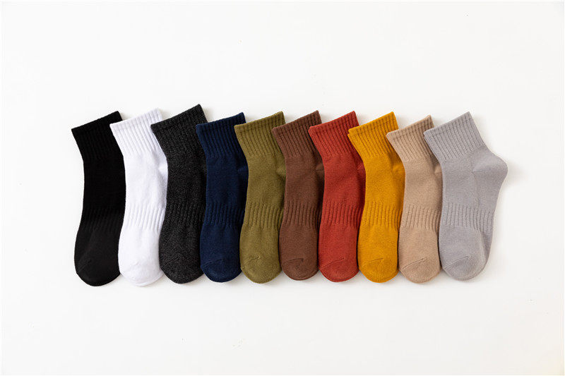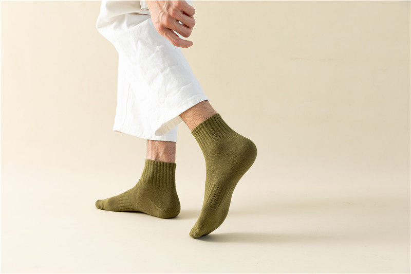 【Мужские носки, базовый стиль, стиль ежедневного качества】 Все 5 пакетов, осенний стиль, универсальный сплошной цвет мужские хлопковые носки