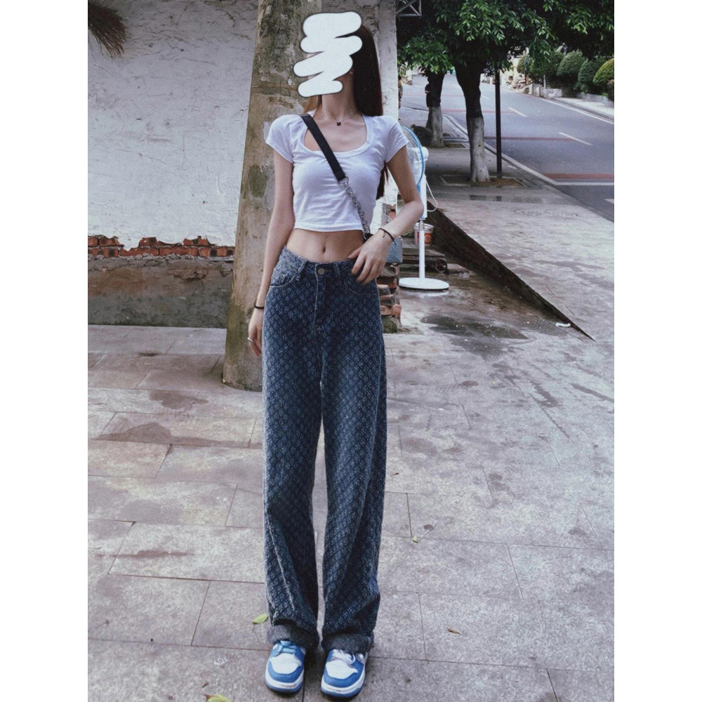 Осенние джинсы, весенние длинные штаны, европейский стиль, свободный прямой крой, стройный силуэт, высокая талия