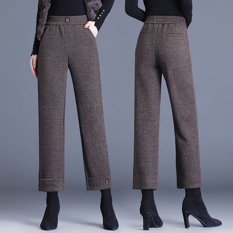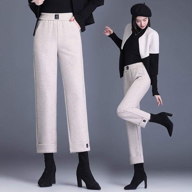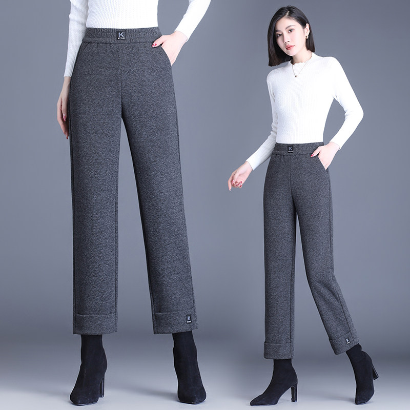 Флисовые шерстяные демисезонные штаны для отдыха, свободный прямой крой, высокая талия, оверсайз