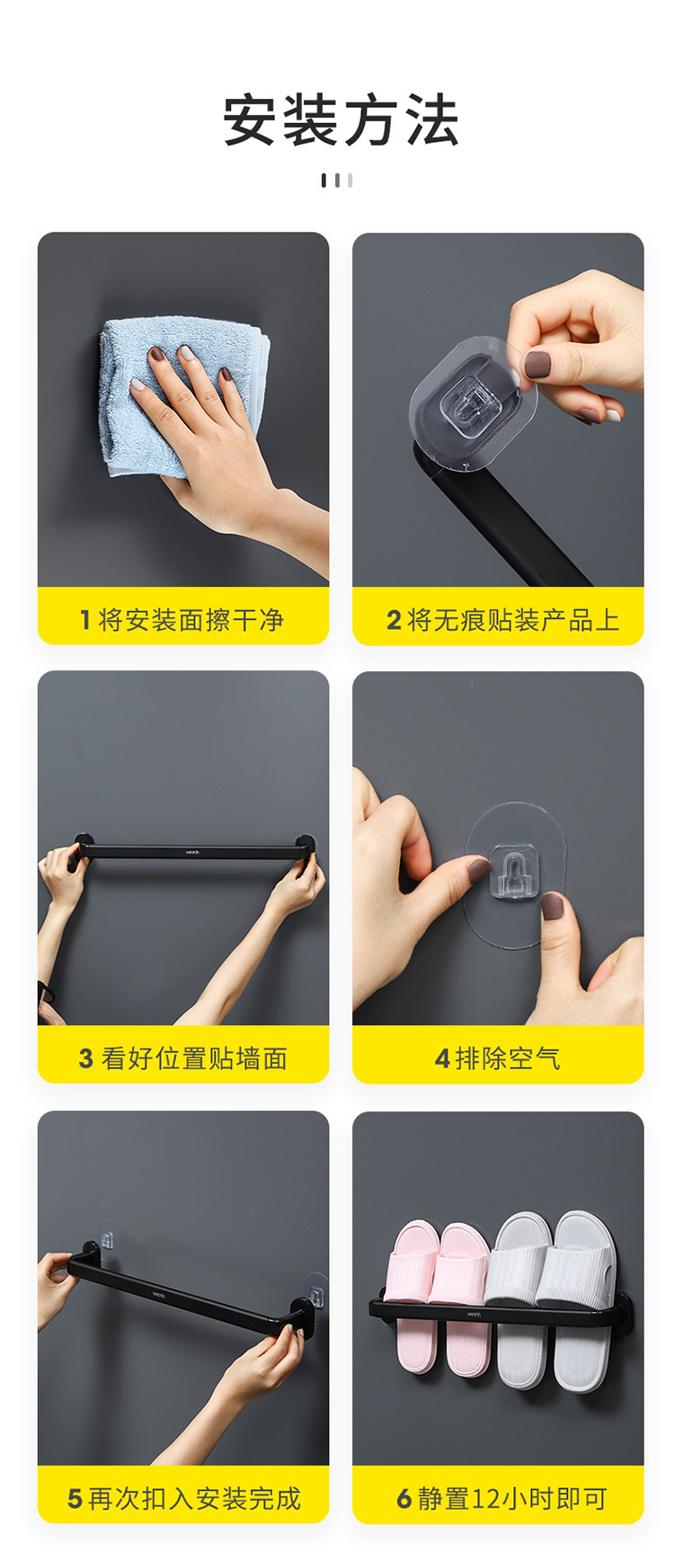 • Элегантный черный [одинокий человек+три человека] может повесить 1 полотенце+три пары тапочек