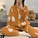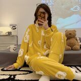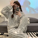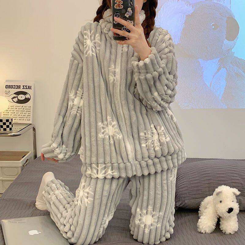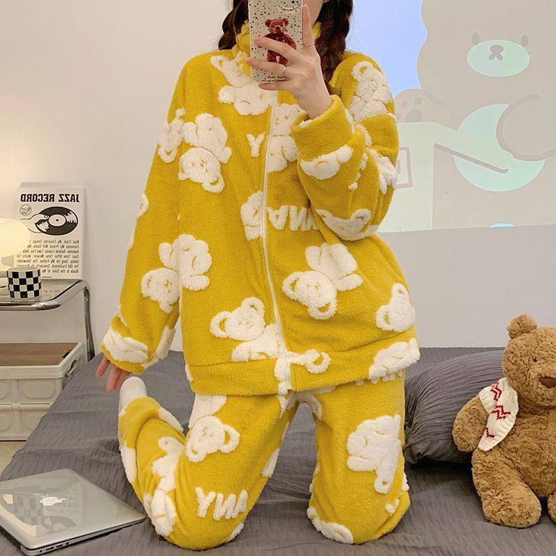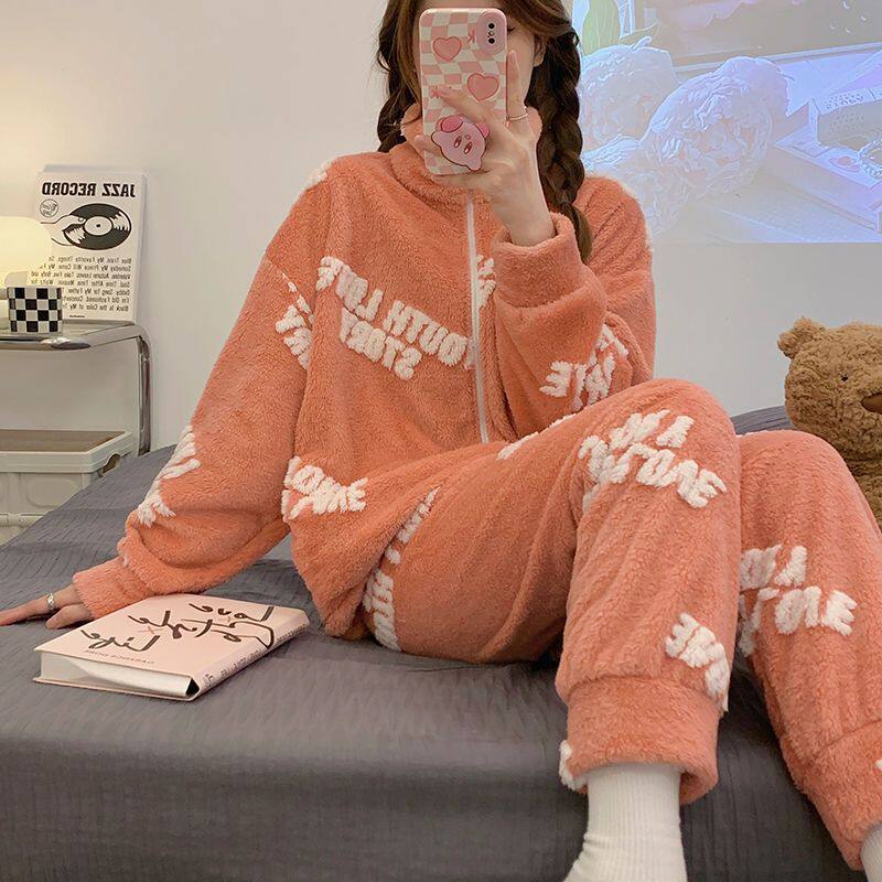Коралловая бархатная пижама, утепленные джинсы с начесом с молнией, комплект для школьников и студентов, коллекция 2023