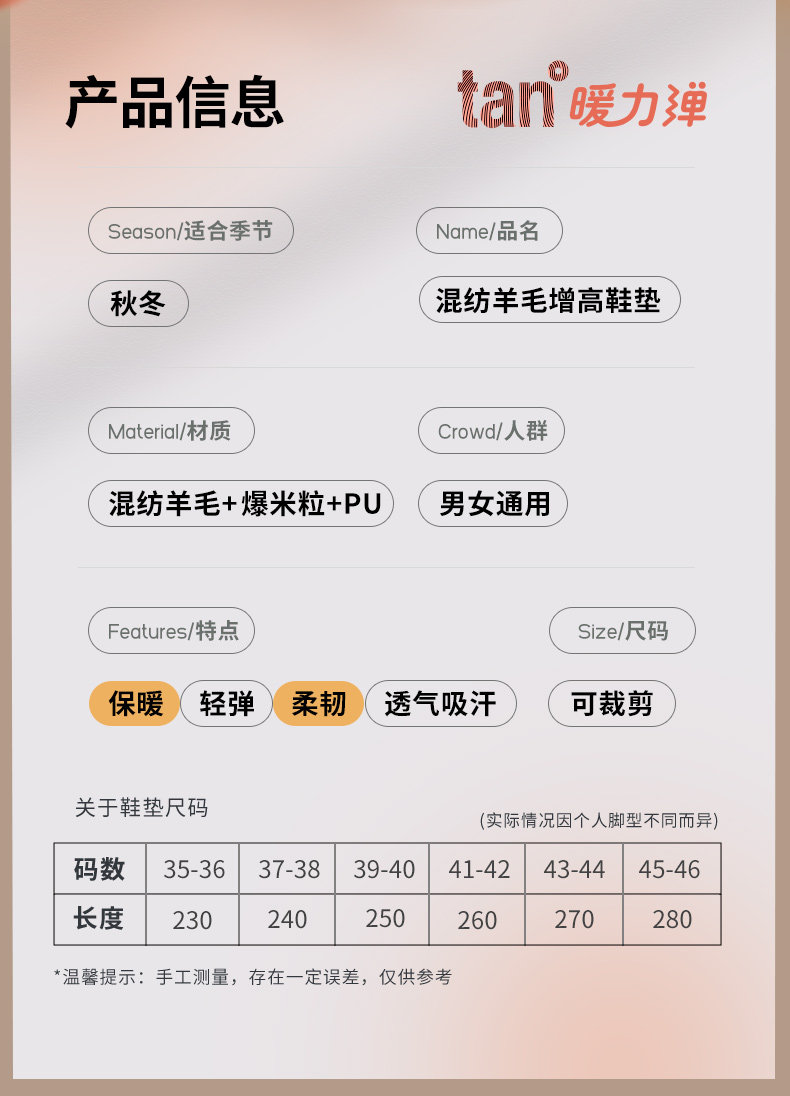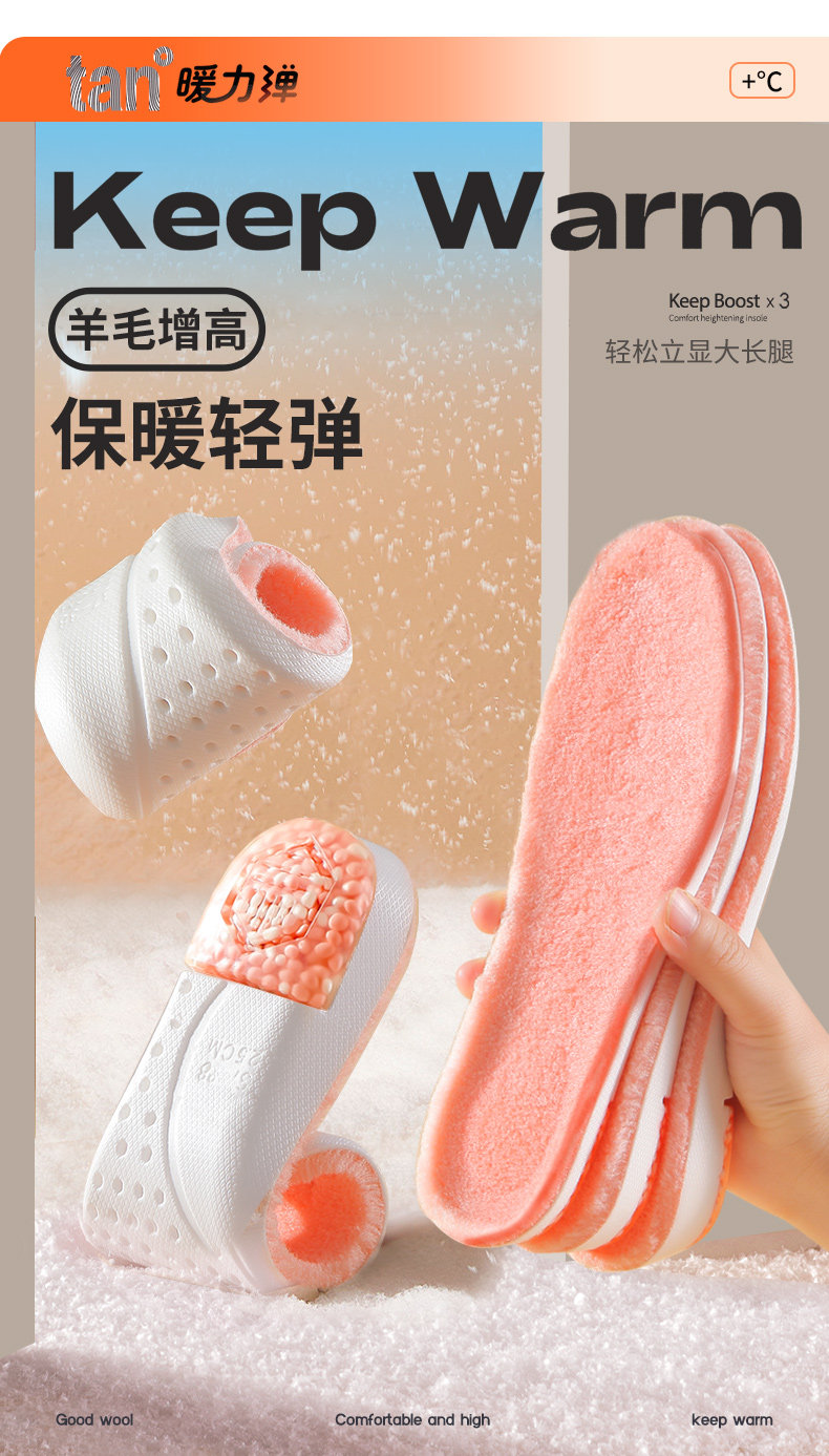 - 【1 Пара】 Увеличьте шерсть с теплой падкой/3,5 см