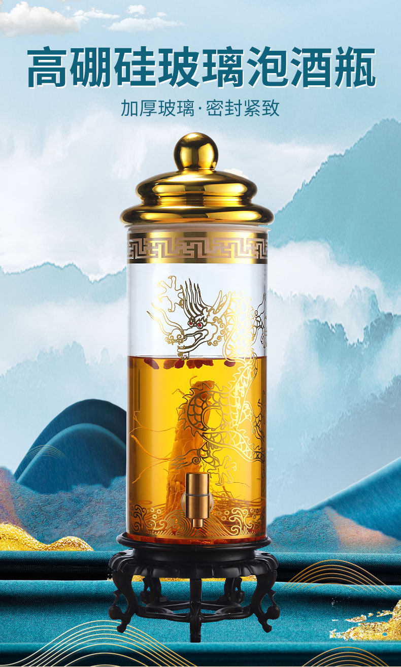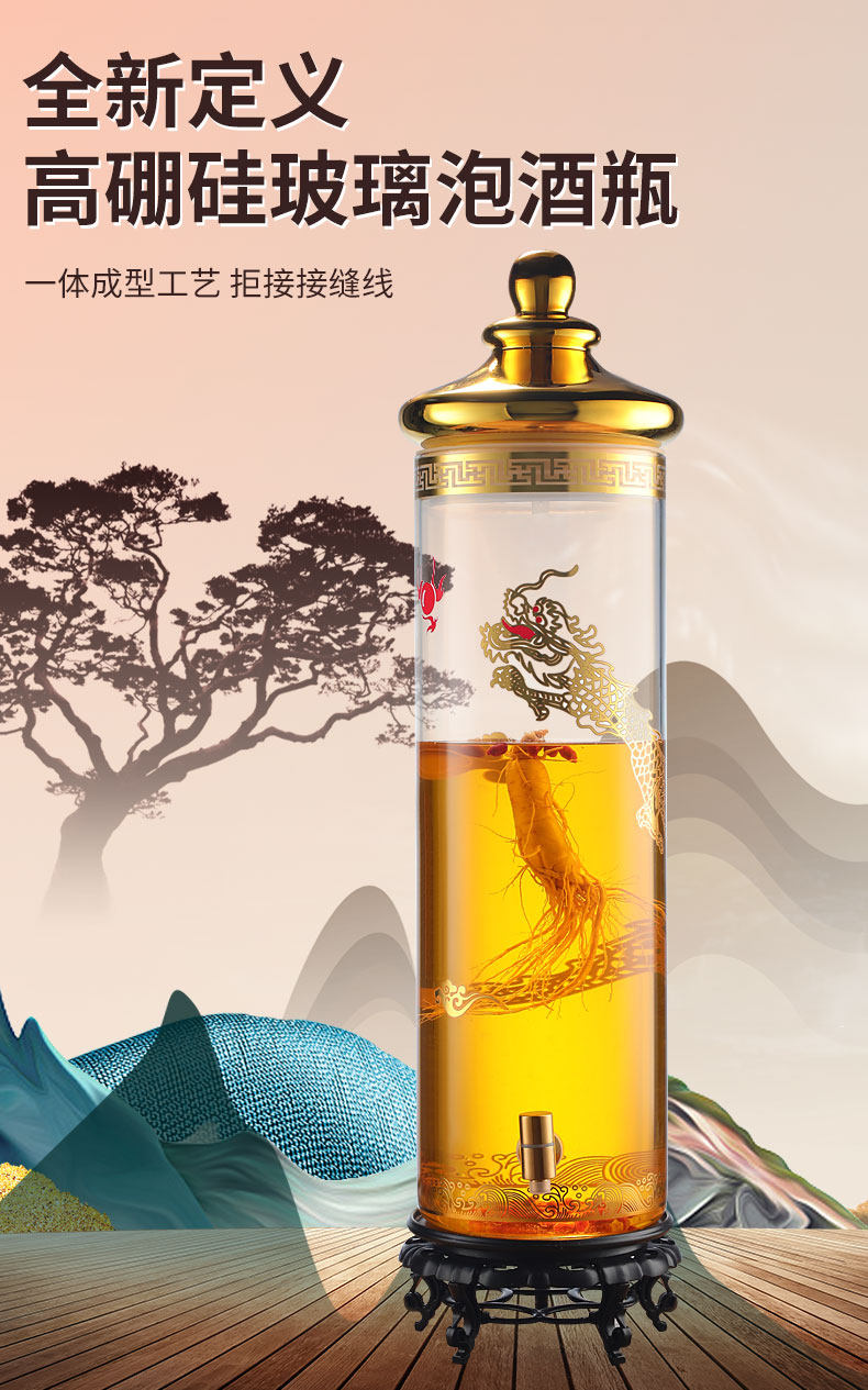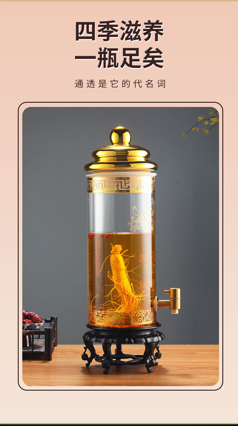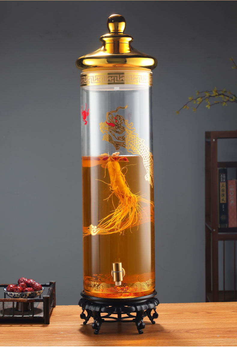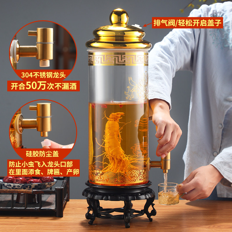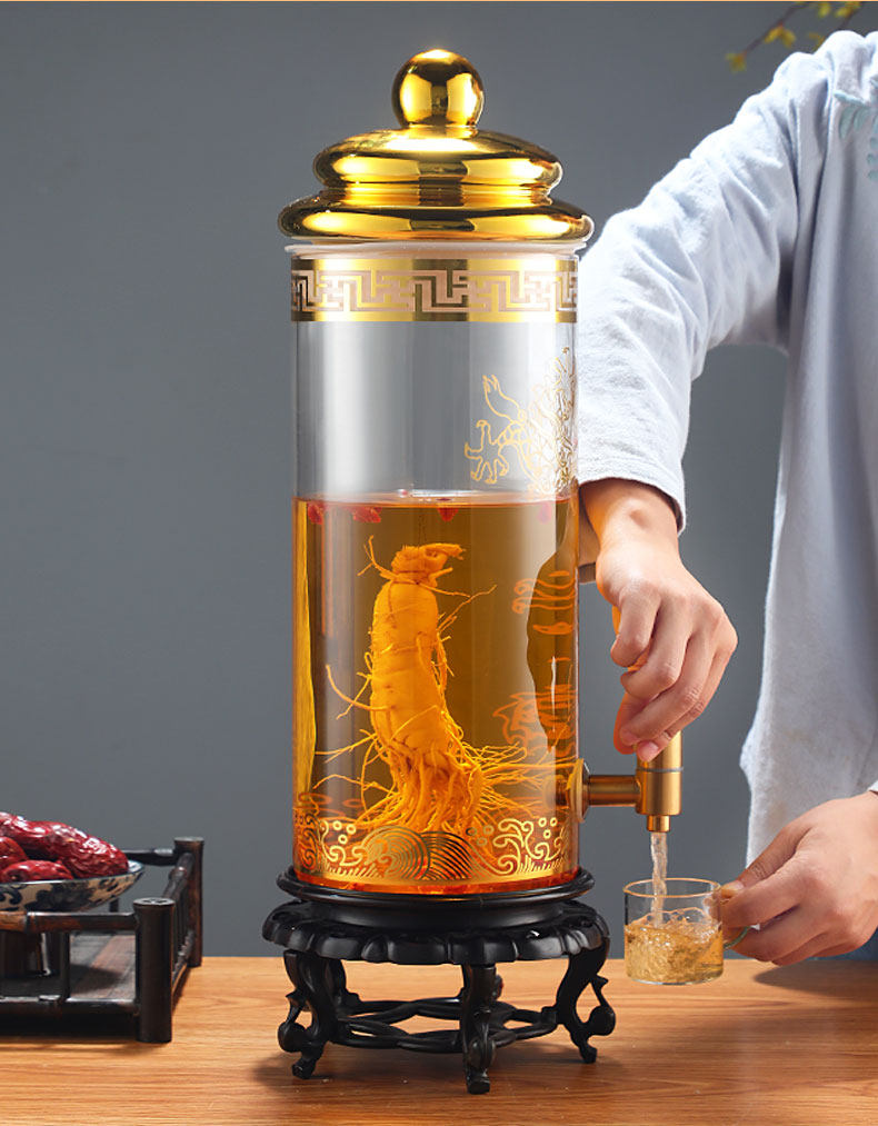 Взятие винной стеклянную бутылку с кран от 10 до 100 кот из бутылки с женьшеном.