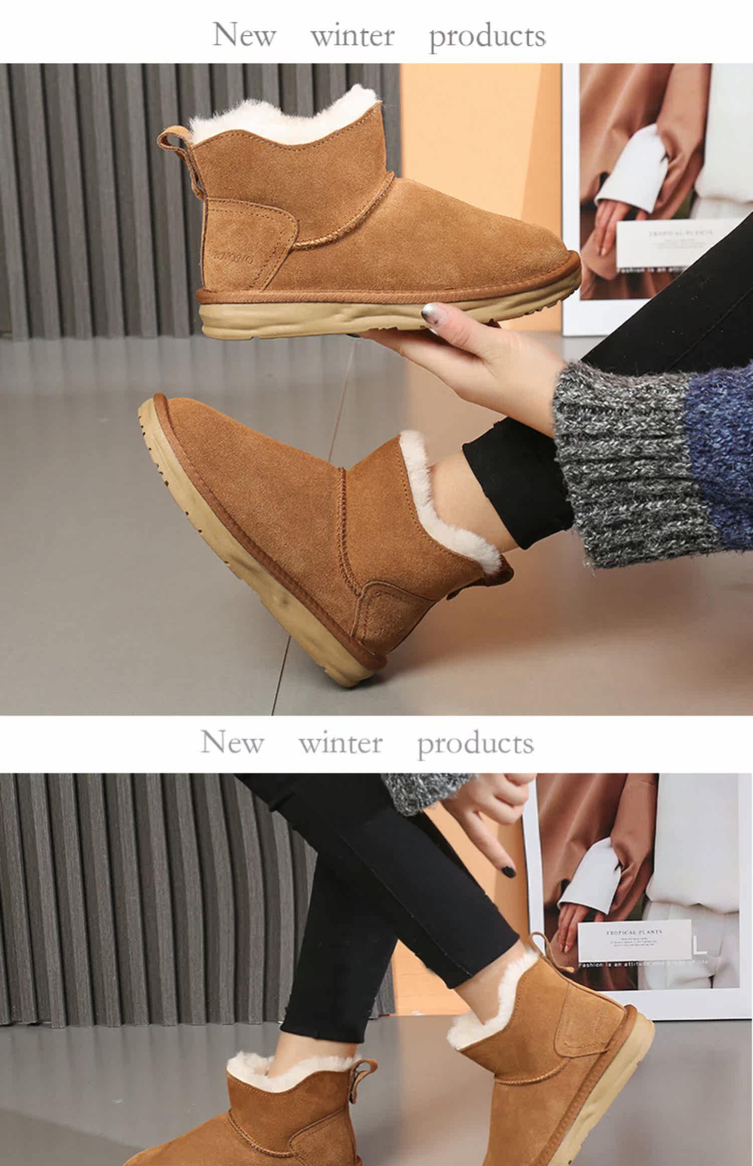 Зимние кожаные сапоги, флисовые нескользящие удерживающие тепло ботинки, коллекция 2022