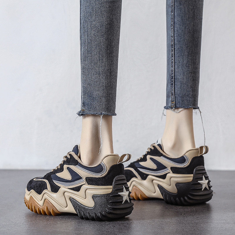 Абрикосовый цвет на толстой подошве плюс бархатные туфли для папы для женщин, осень и зима 2022 года, новый стиль, уличные интернет-знаменитости, суперпопулярная повседневная спортивная обувь, увеличивающая рост