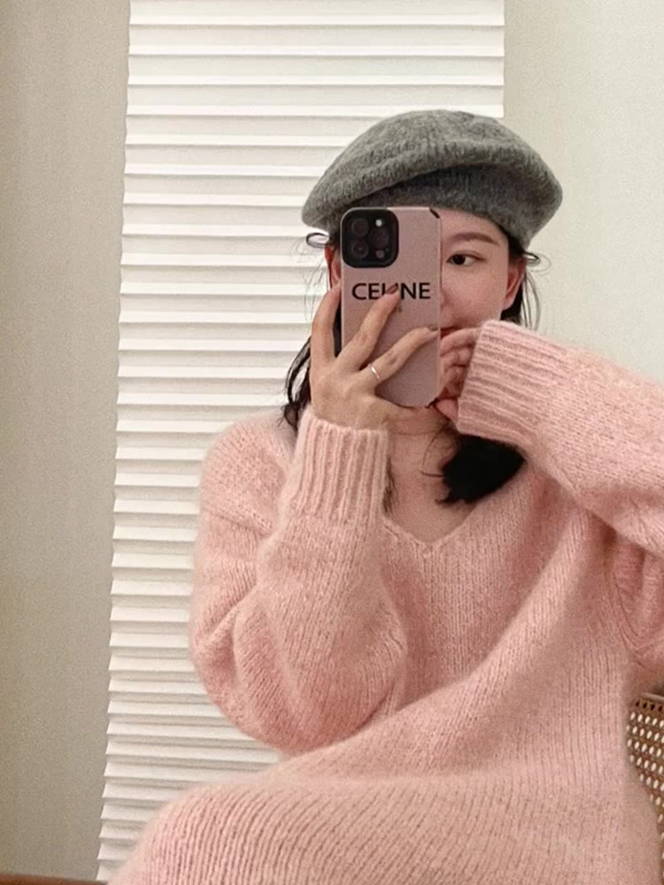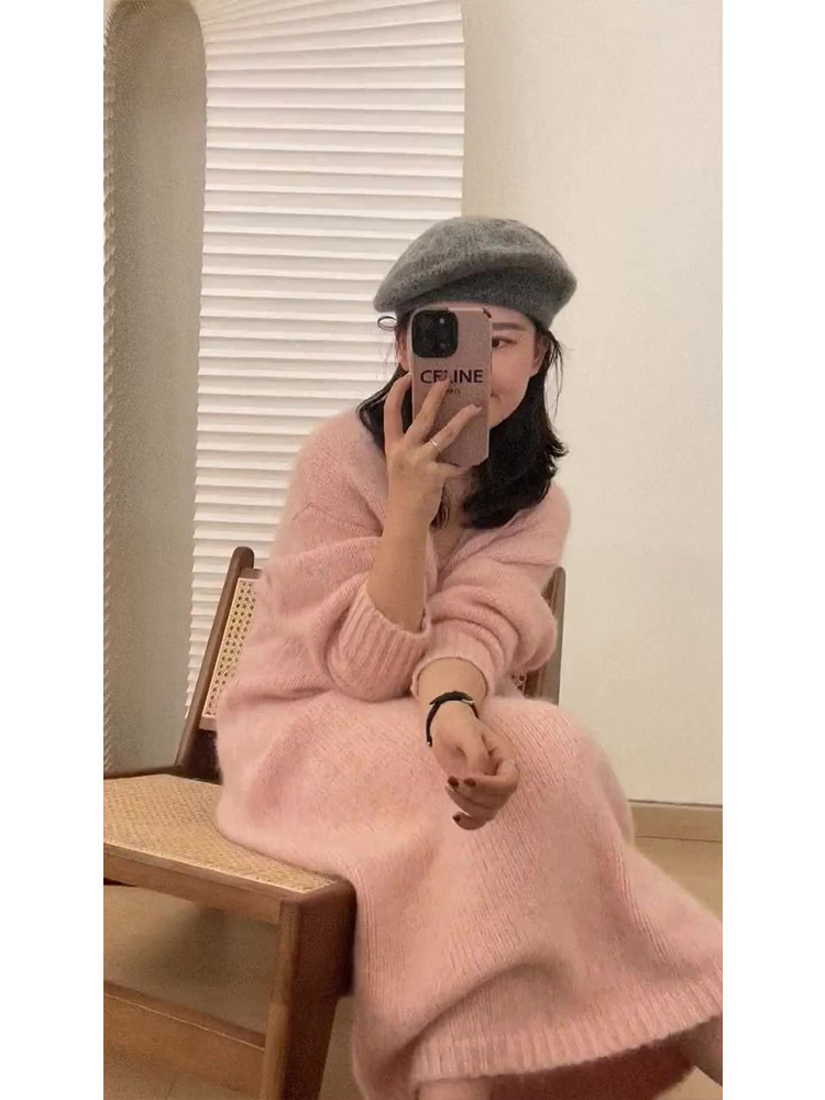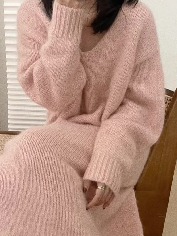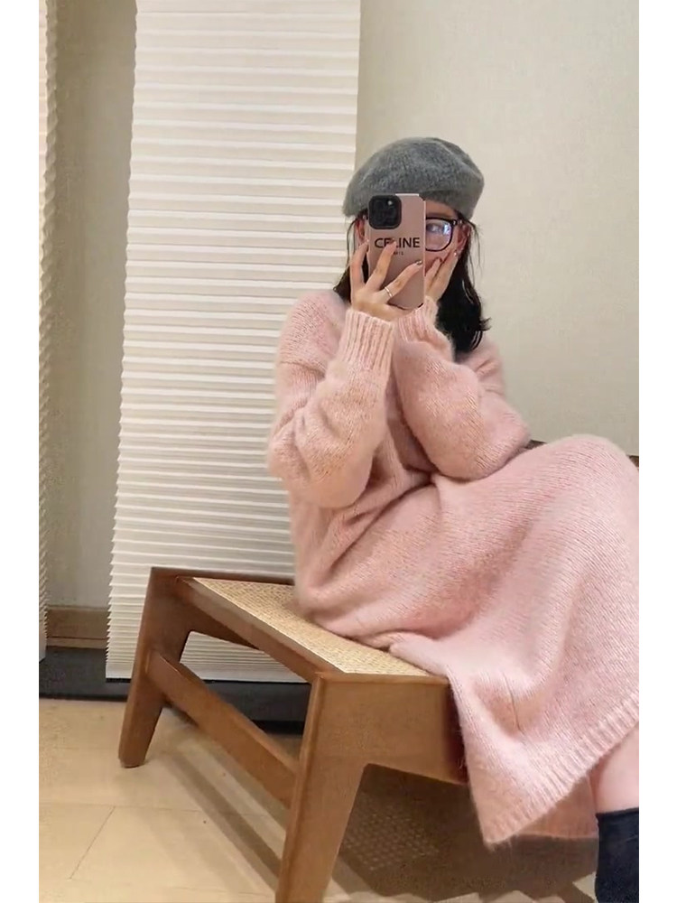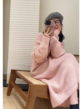 Длинный розовый свитер, трикотажное платье, демисезонная длинная юбка, подходит для подростков, средней длины