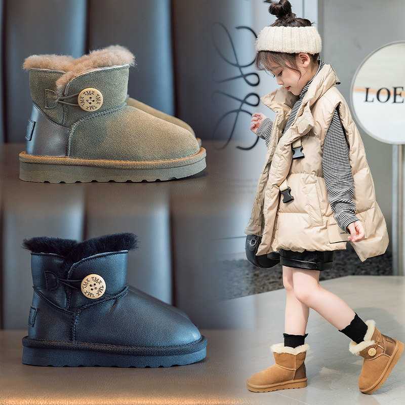 Удерживающие тепло детские утепленные короткие сапоги для мальчиков, из натуральной кожи
