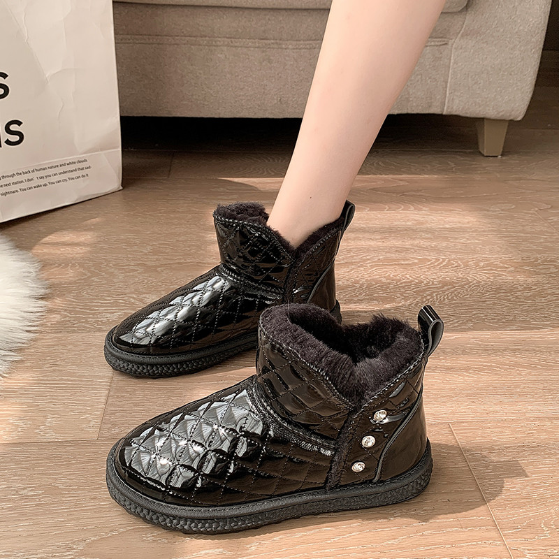 Зимние сапоги на платформе, удерживающая тепло обувь из жемчуга с пухом, коллекция 2022