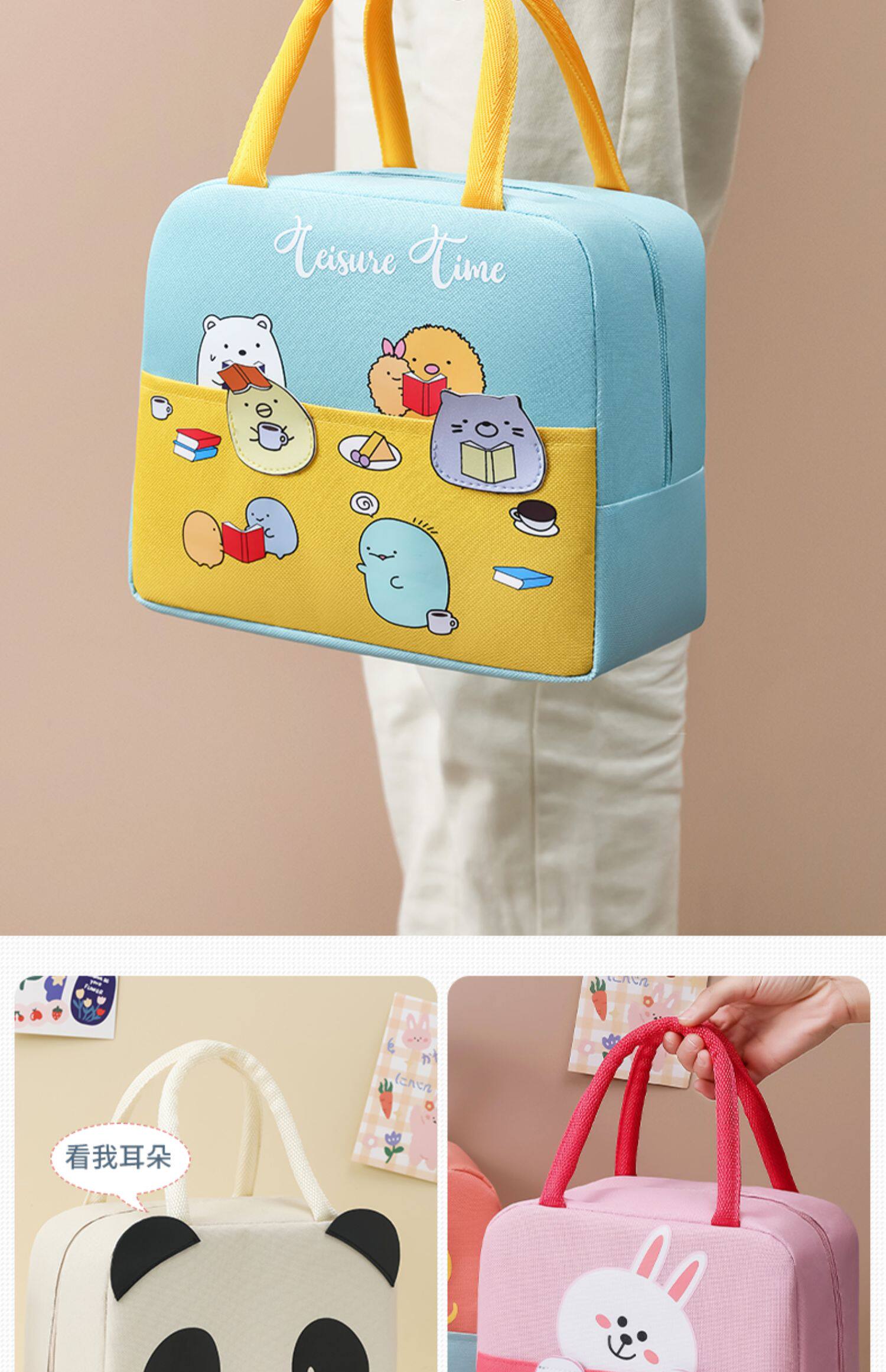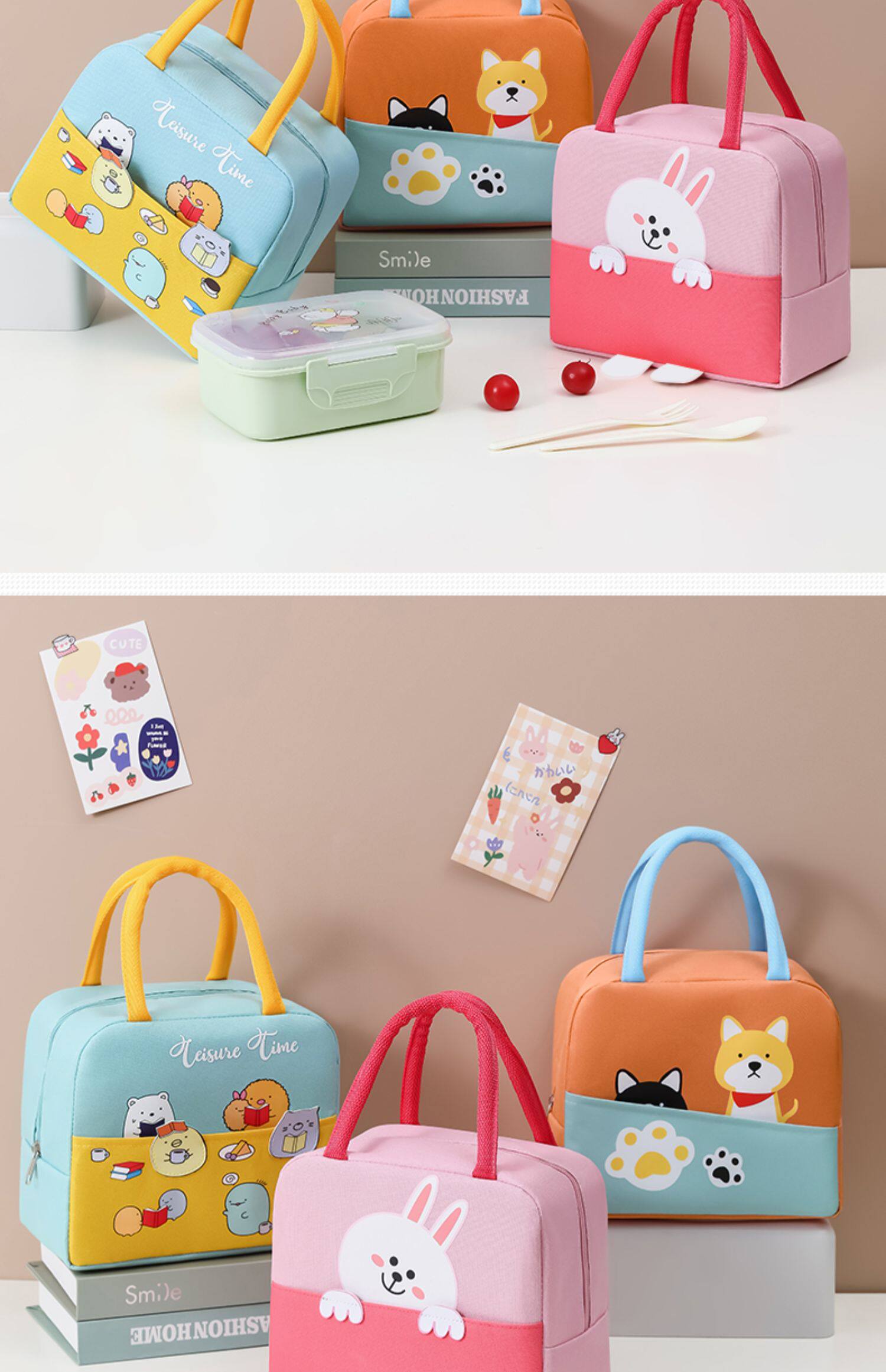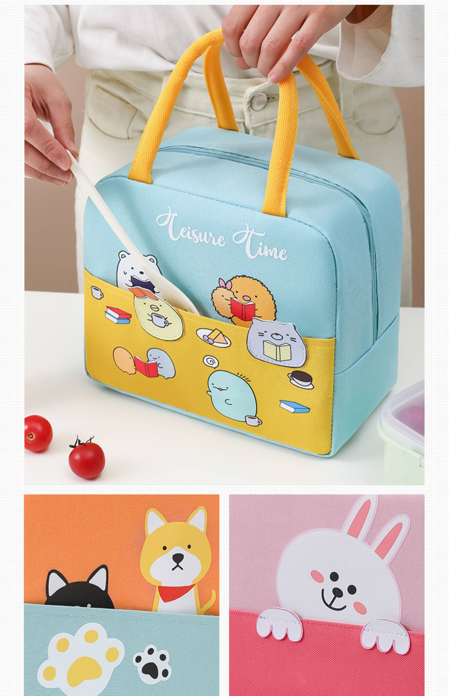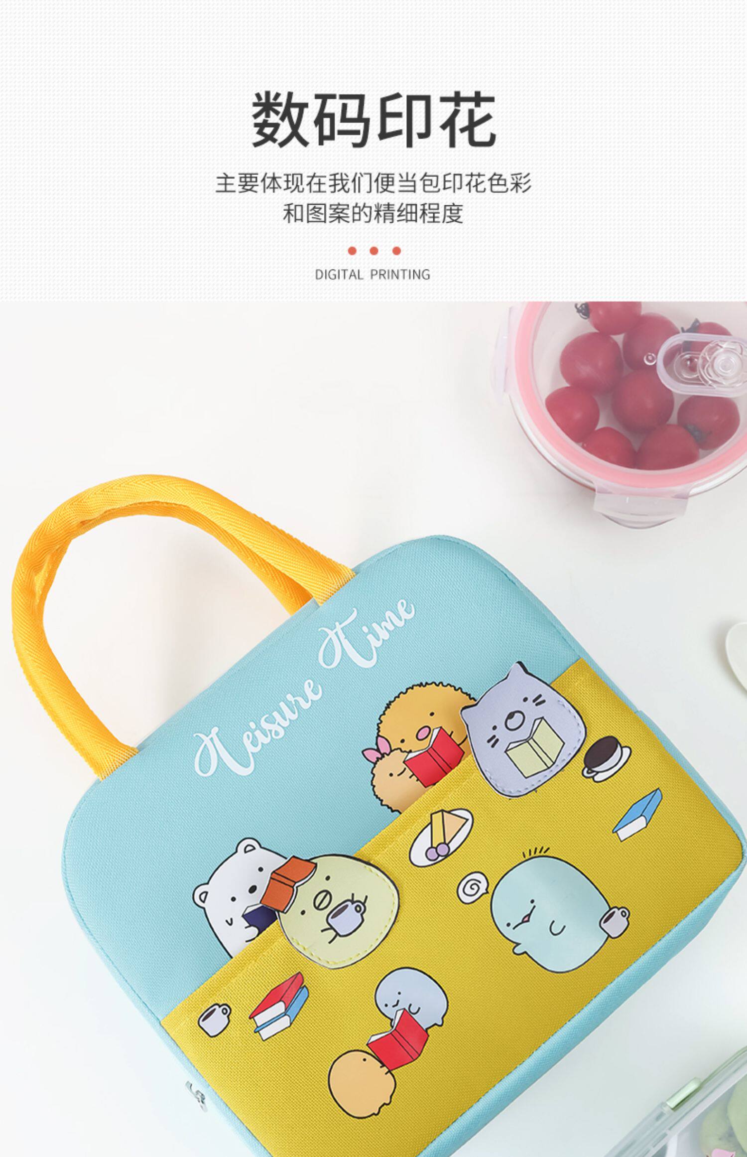 Мультяшный портативный ланч-бокс, термос, сумка, система хранения, сумка для еды, увеличенная толщина