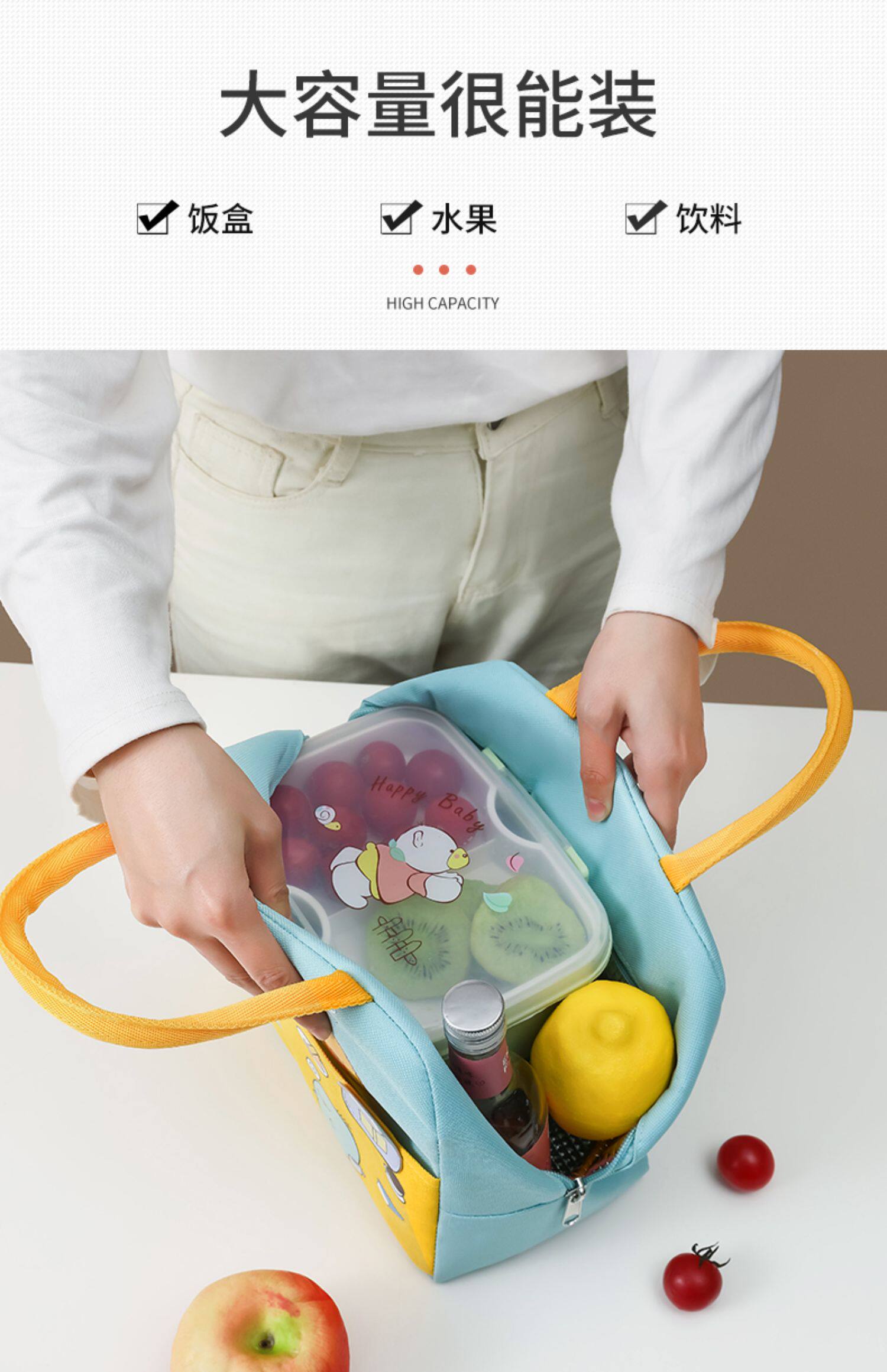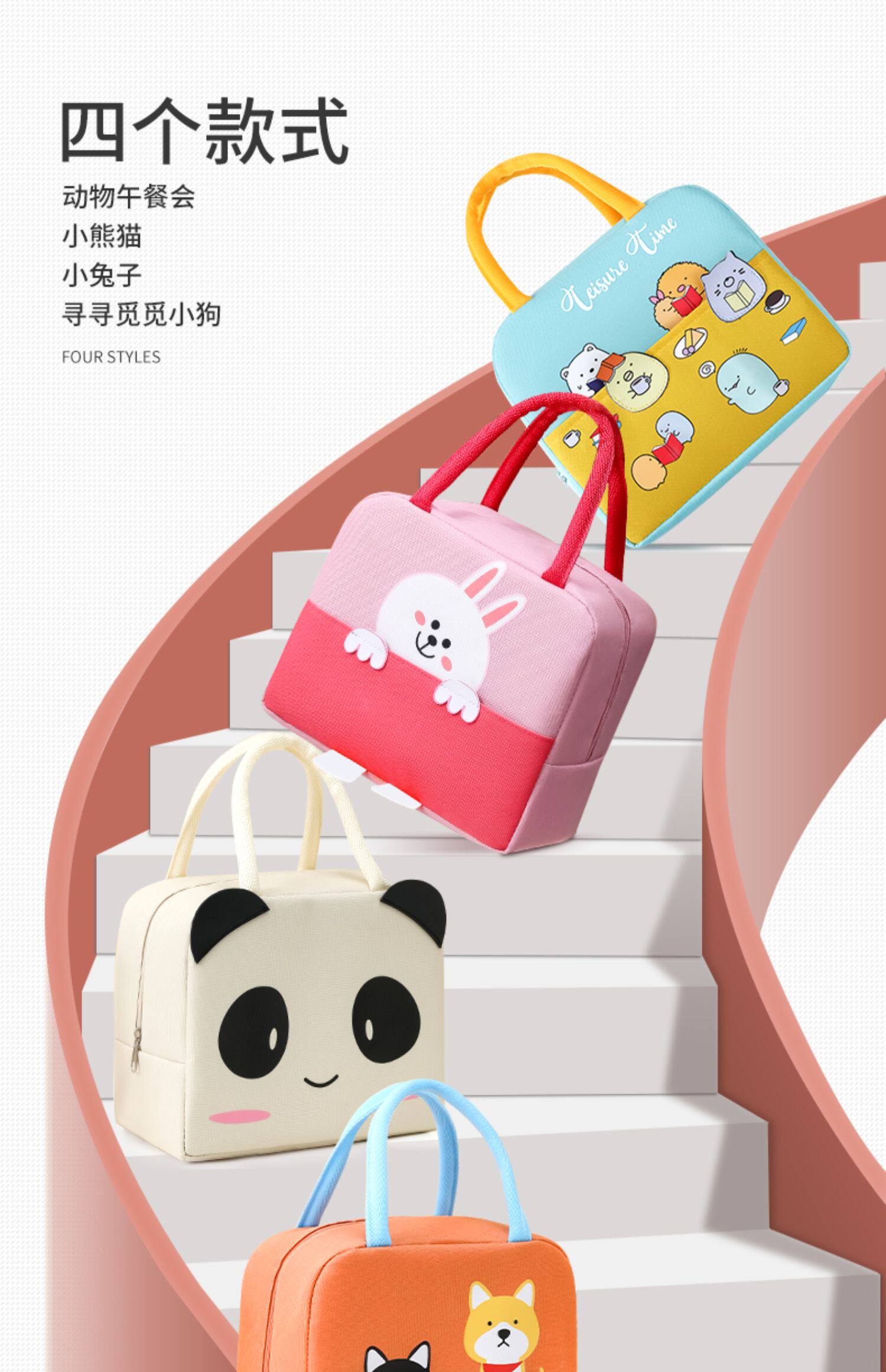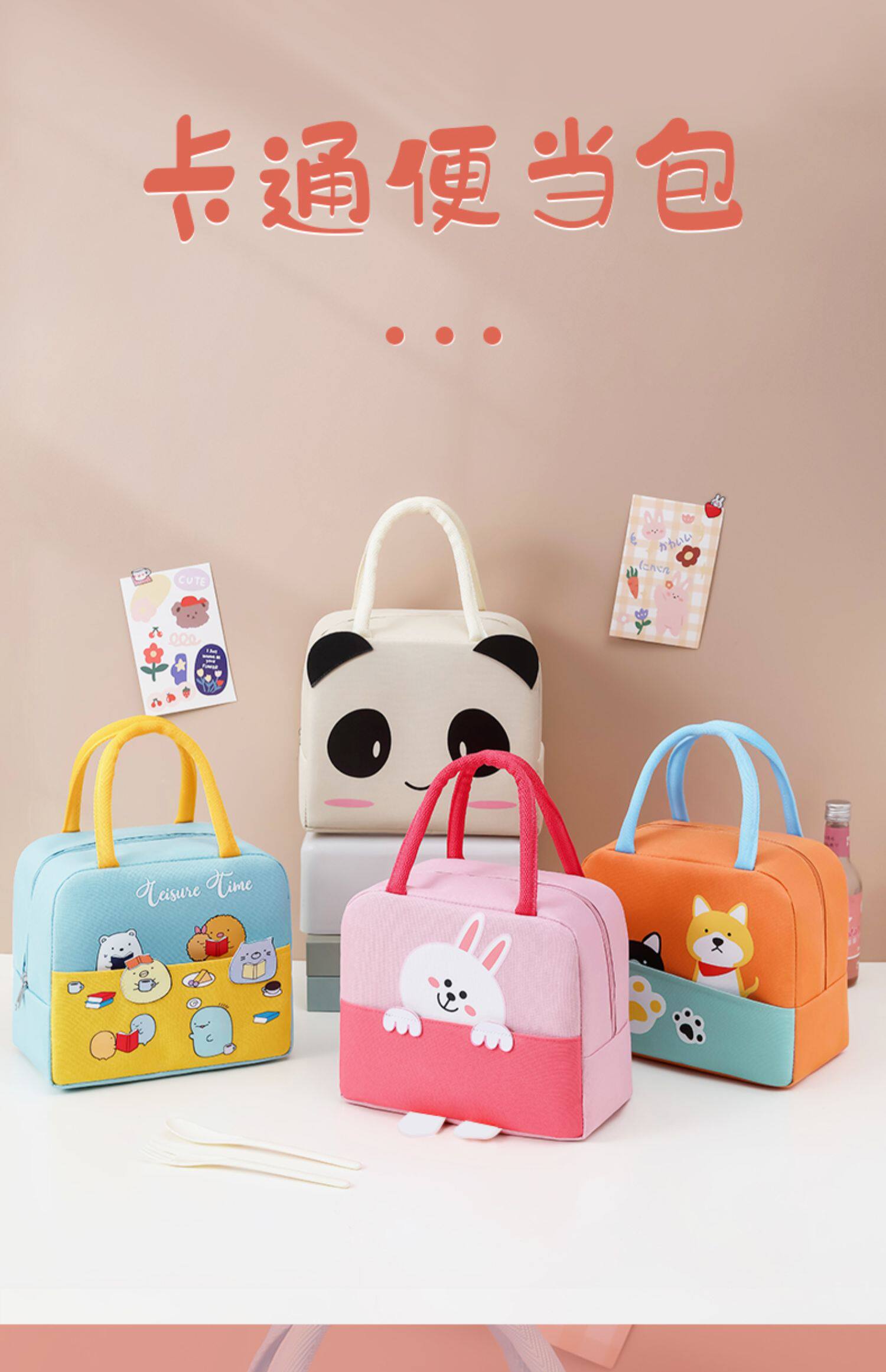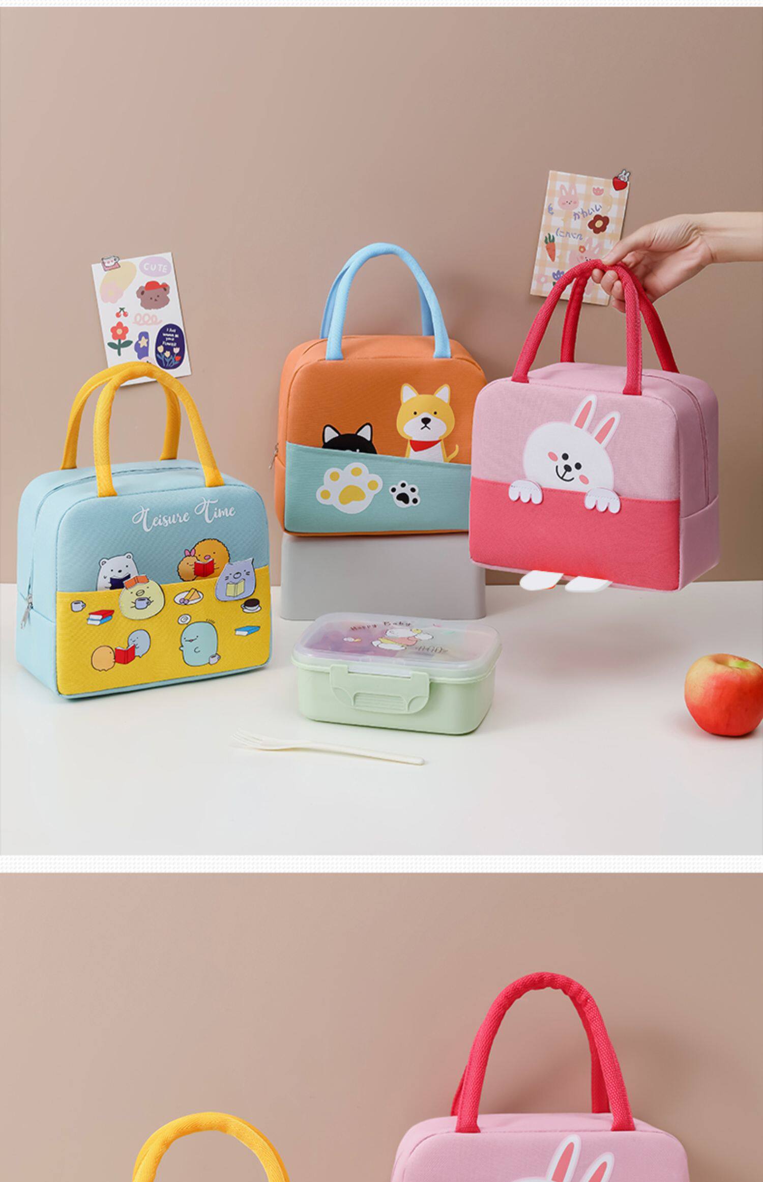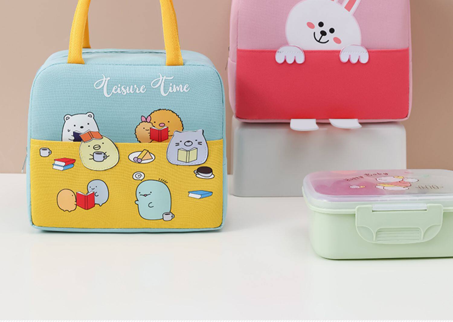 Мультяшный портативный ланч-бокс, термос, сумка, система хранения, сумка для еды, увеличенная толщина