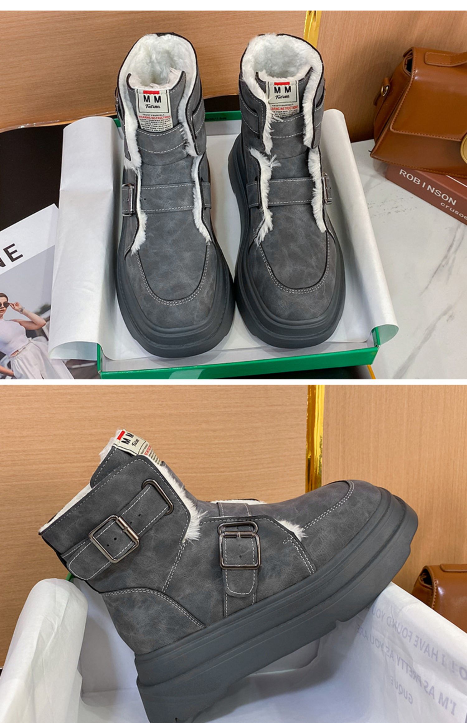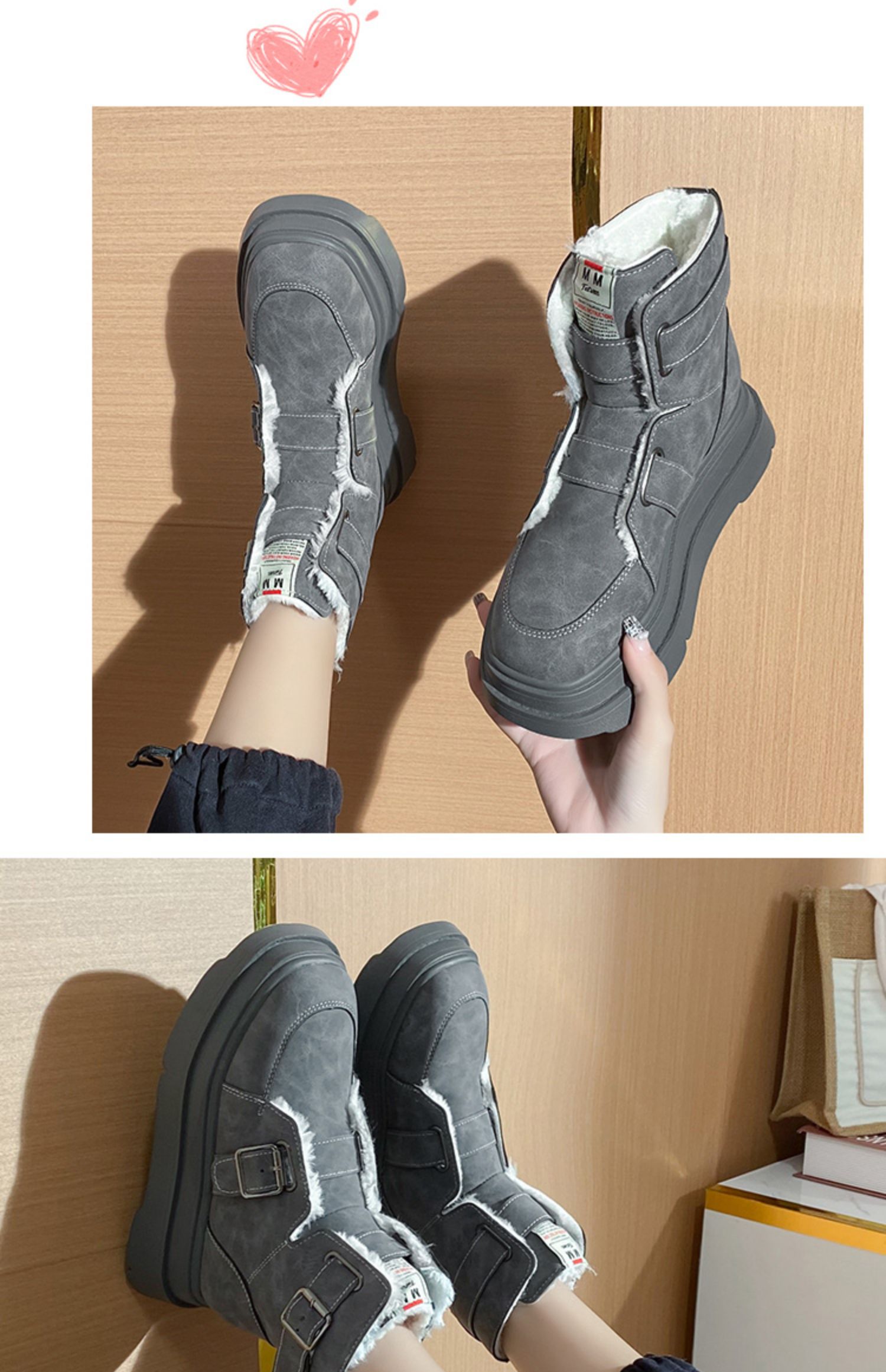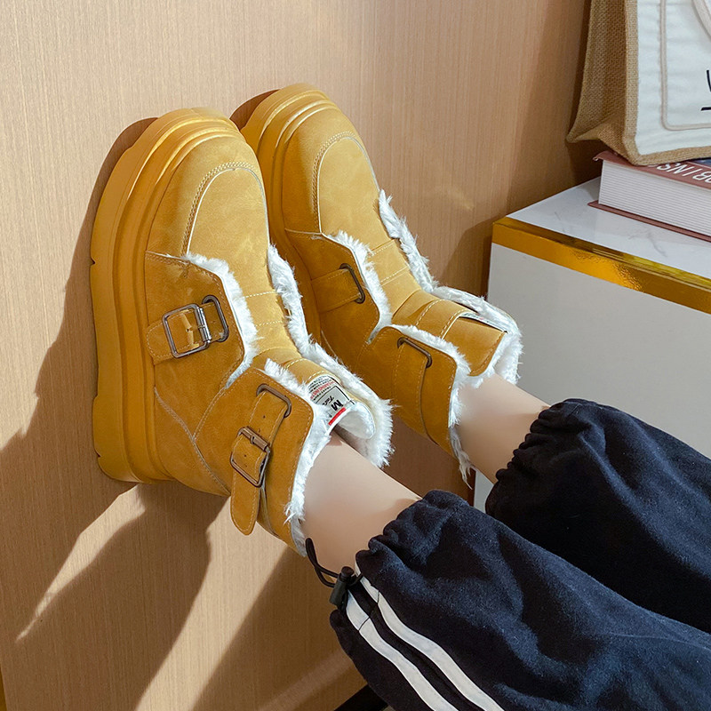 Ремень, пряжка, зимние сапоги, утепленные нескользящие туфли на платформе, удерживающие тепло ботинки