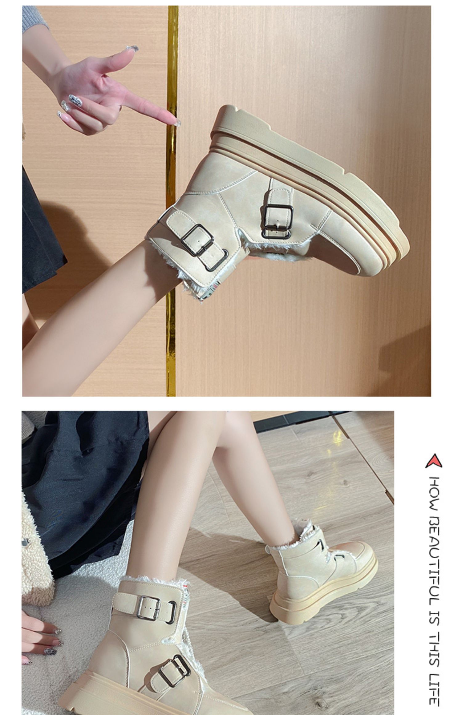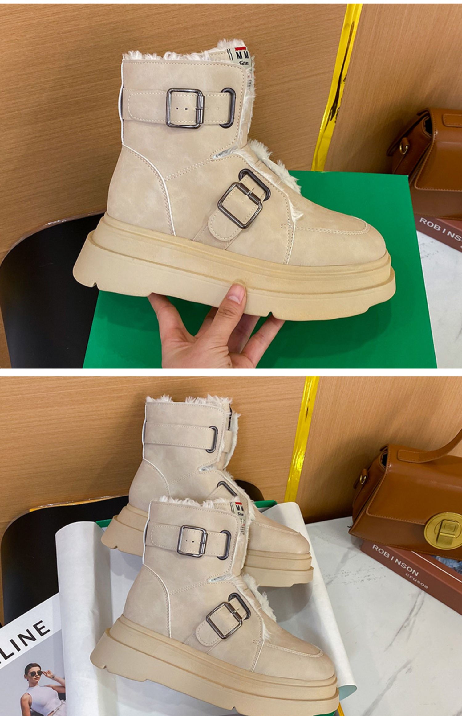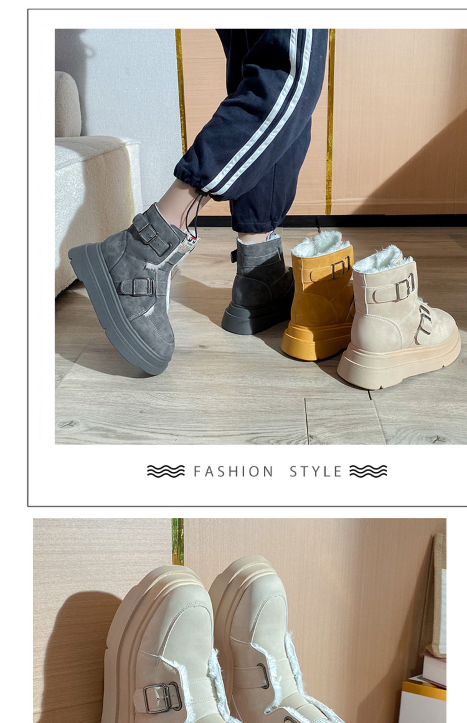 Ремень, пряжка, зимние сапоги, утепленные нескользящие туфли на платформе, удерживающие тепло ботинки