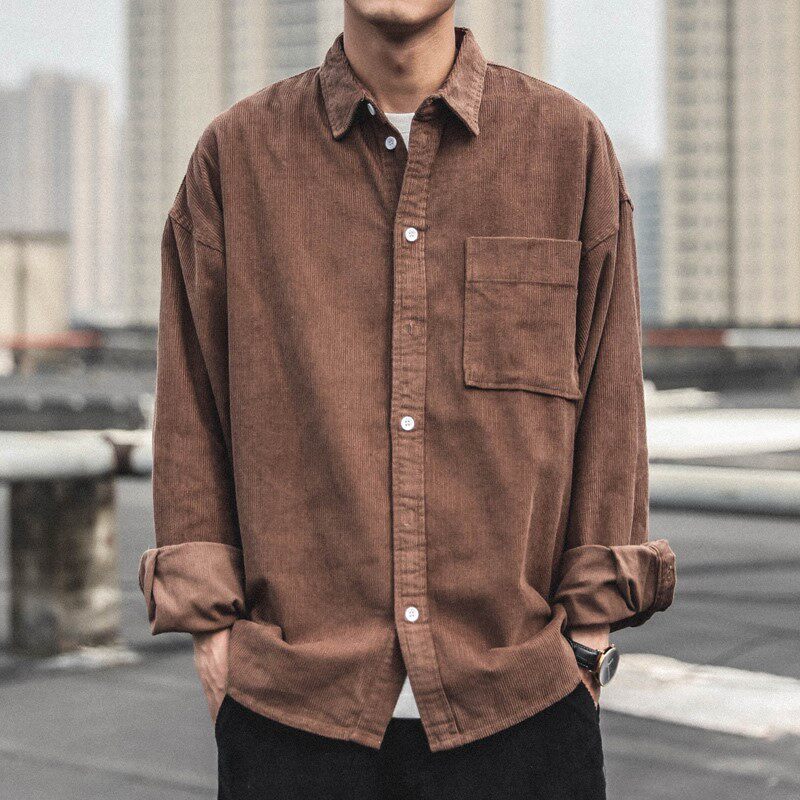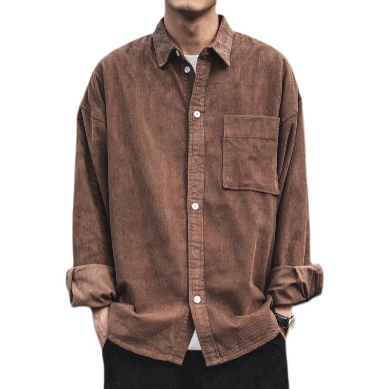 Демисезонная брендовая вельветовая рубашка, лонгслив, куртка, классическая длина, подходит для подростков