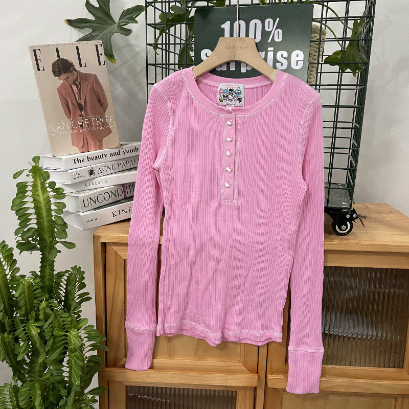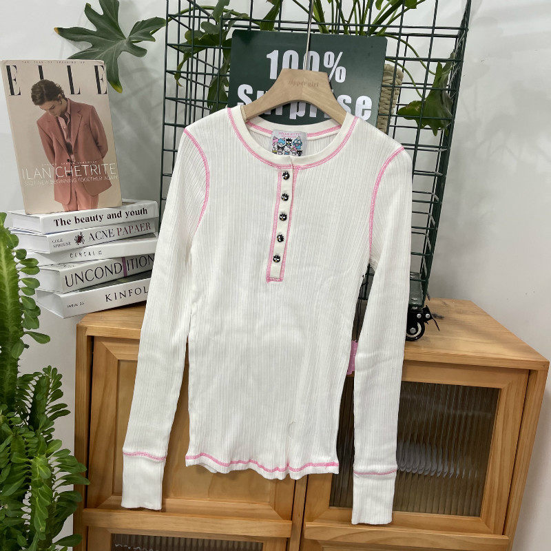 Хлопковый приталенный лонгслив с круглым воротником, свитер, комплект