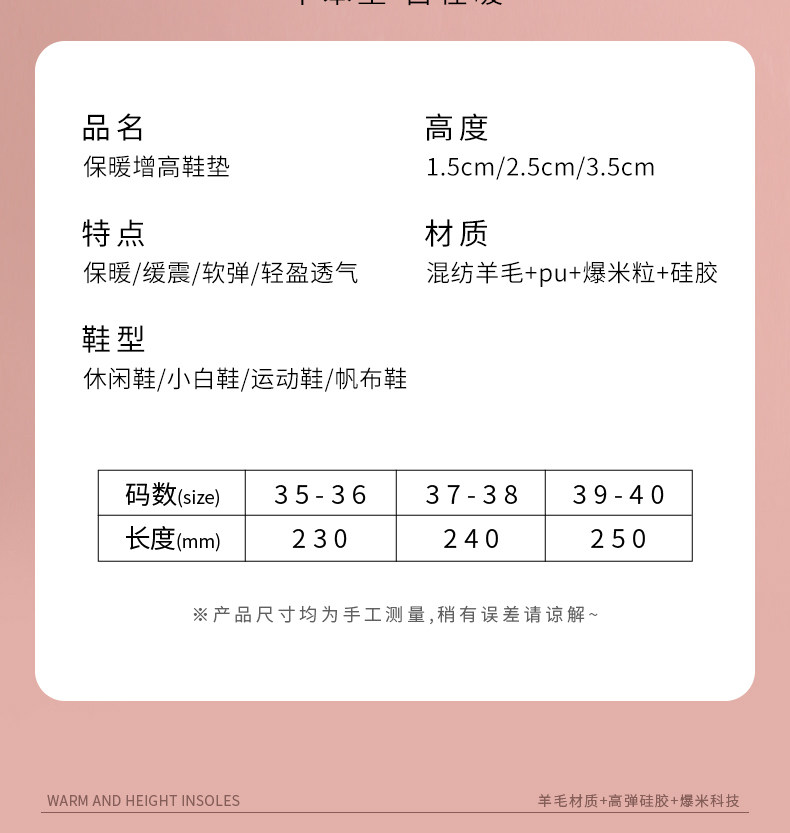 | Цвет: | [Фавориты и покупка] наслаждаться предпочтительной доставкой, [1 пара] плюшевый бархат, чтобы ваши ноги были теплыми, мягкими и эластичными - 1,5 см, [1 пара] плюшевый бархат, чтобы ваши ноги были в тепле, мягкости и не утомлялись - 2,5 см, [1 пара] плюшевый бархат, чтобы ваши ноги были в тепле, мягкие и эластичные, не утомляя ноги - 3,5 см, [2 пары] плюшевый бархат, чтобы ваши ноги были в тепле, мягкости и не утомлялись - 1,5 см, [2 пары] плюшевый бархат, чтобы ваши ноги были теплыми и мягкими - 2,5 см, [2 пары] плюшевый бархат, чтобы ваши ноги были теплыми, мягкими и эластичными - 3,5 см, [2 пары] плюшевый бархат, чтобы ваши ноги были теплыми, мягкими и эластичными - 1,5 см + 2,5 см, [2 пары] плюшевый бархат, чтобы ваши ноги были теплыми, мягкими и эластичными - 1,5 см + 3,5 см, [2 пары] плюшевый бархат, чтобы ваши ноги были теплыми, мягкими и эластичными - 2,5 см + 3,5 см, ., .., ... |