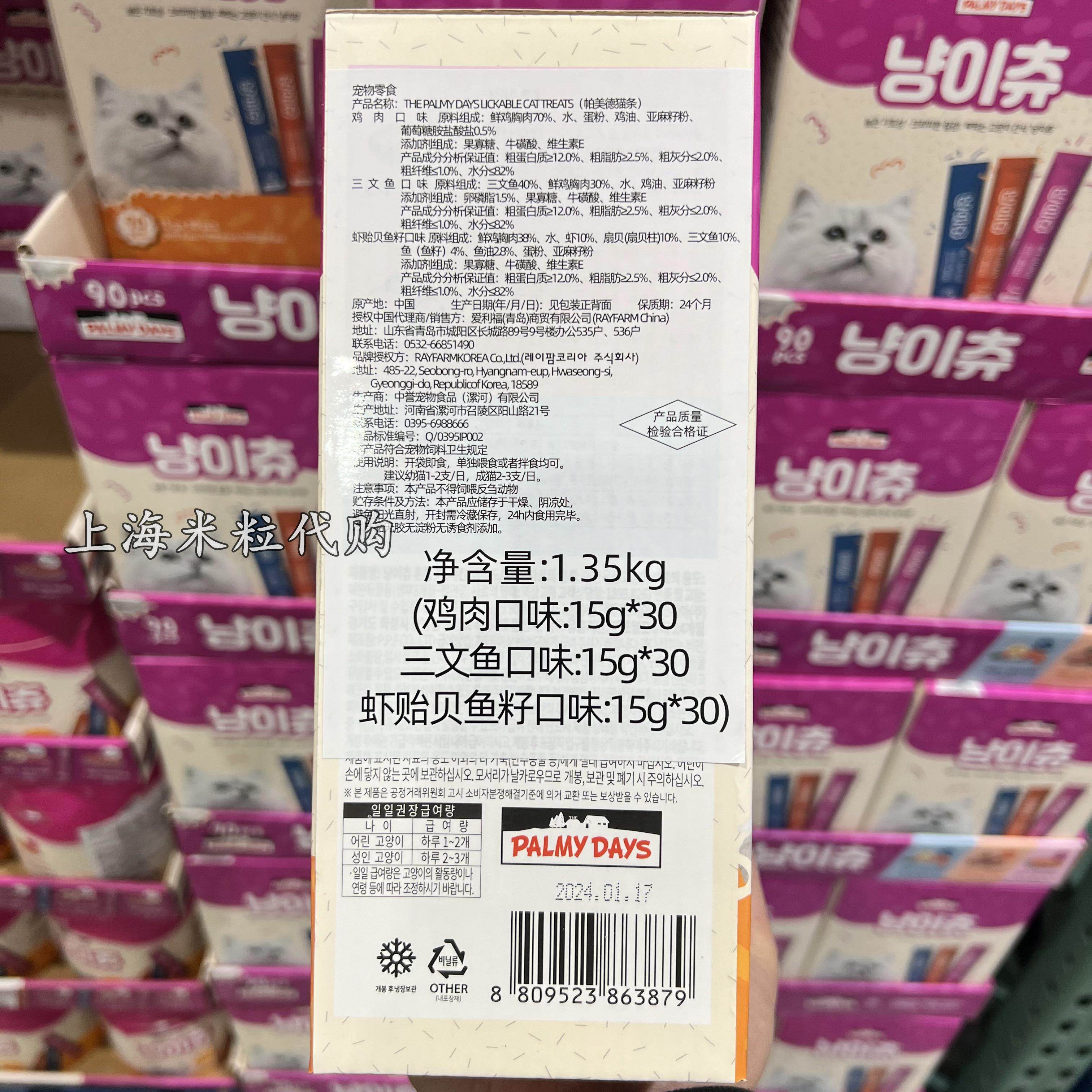 Открыто в Шанхае 𫔭 Шайк Памеда Кошачья полоски 90, включая курицу, лосось, моллюсков, рыбу, яйца, 3 вкуса закуски для домашних животных