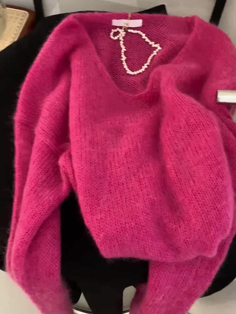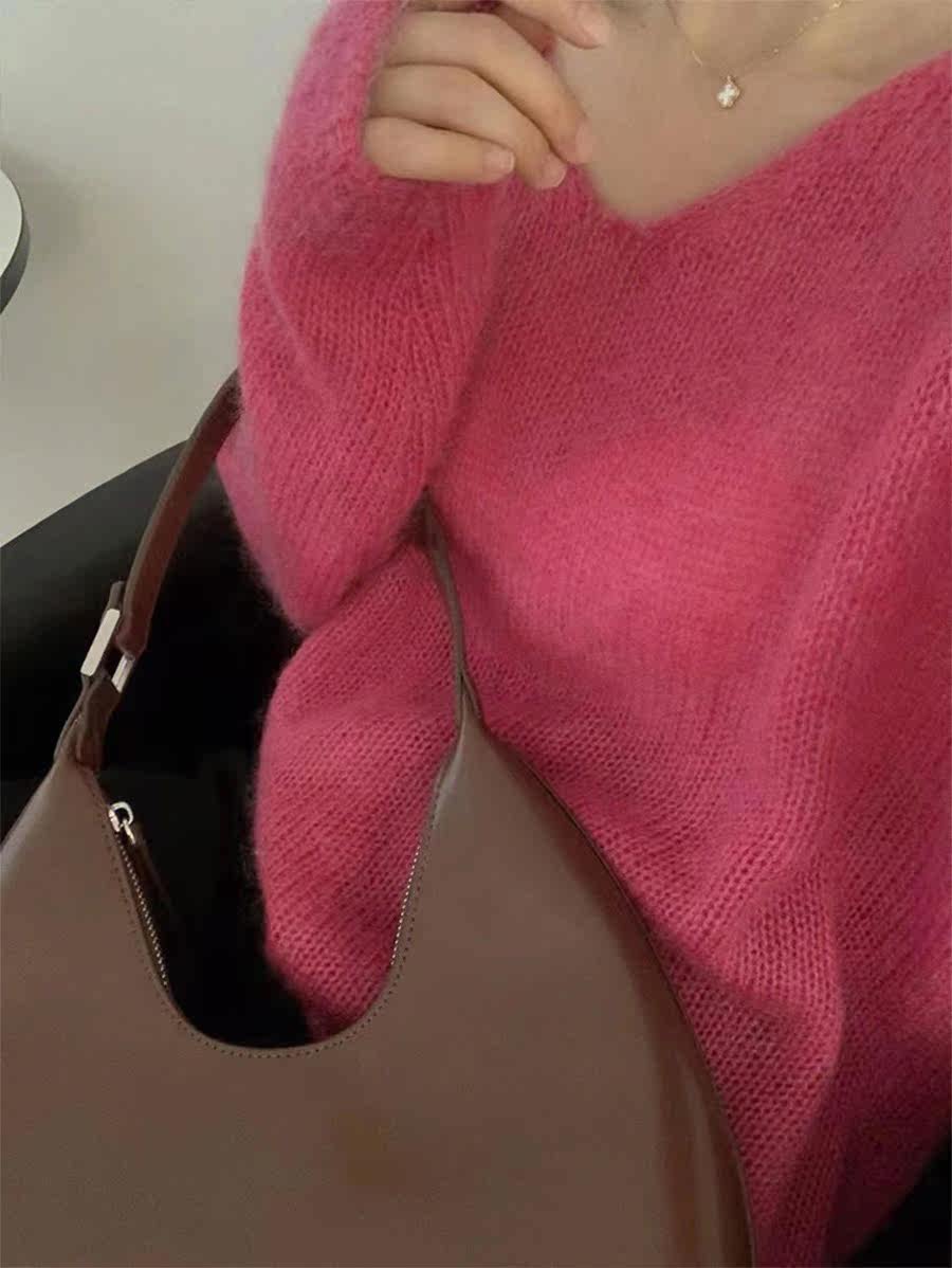Красный демисезонный свитер, лонгслив, рубашка, V-образный вырез