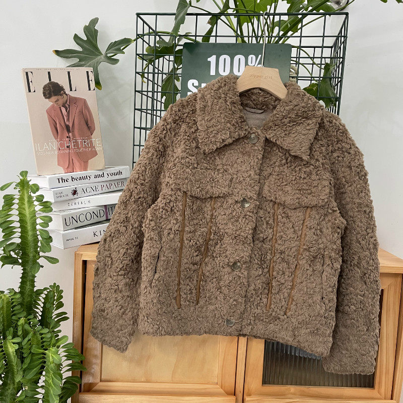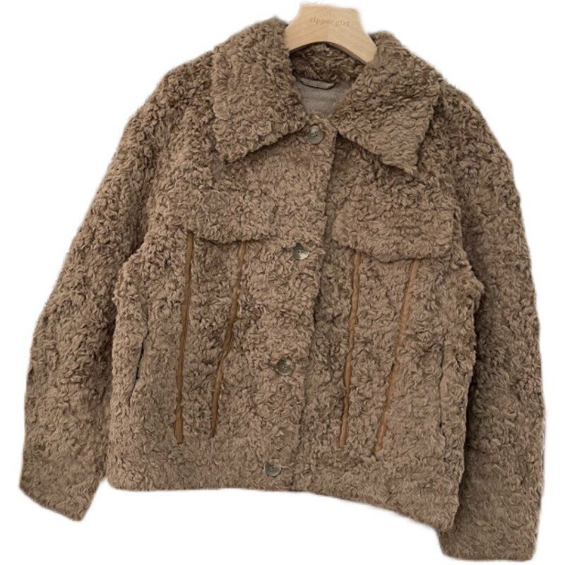 Выделите кожаную строчку чисто -ролевую кашемирную куртку из баранины Бесплатная доставка без возврата