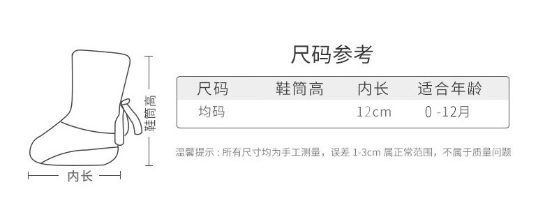 | Размер обуви: | 0-12 месяцев, подходит для стопы длиной 8-12 см. |