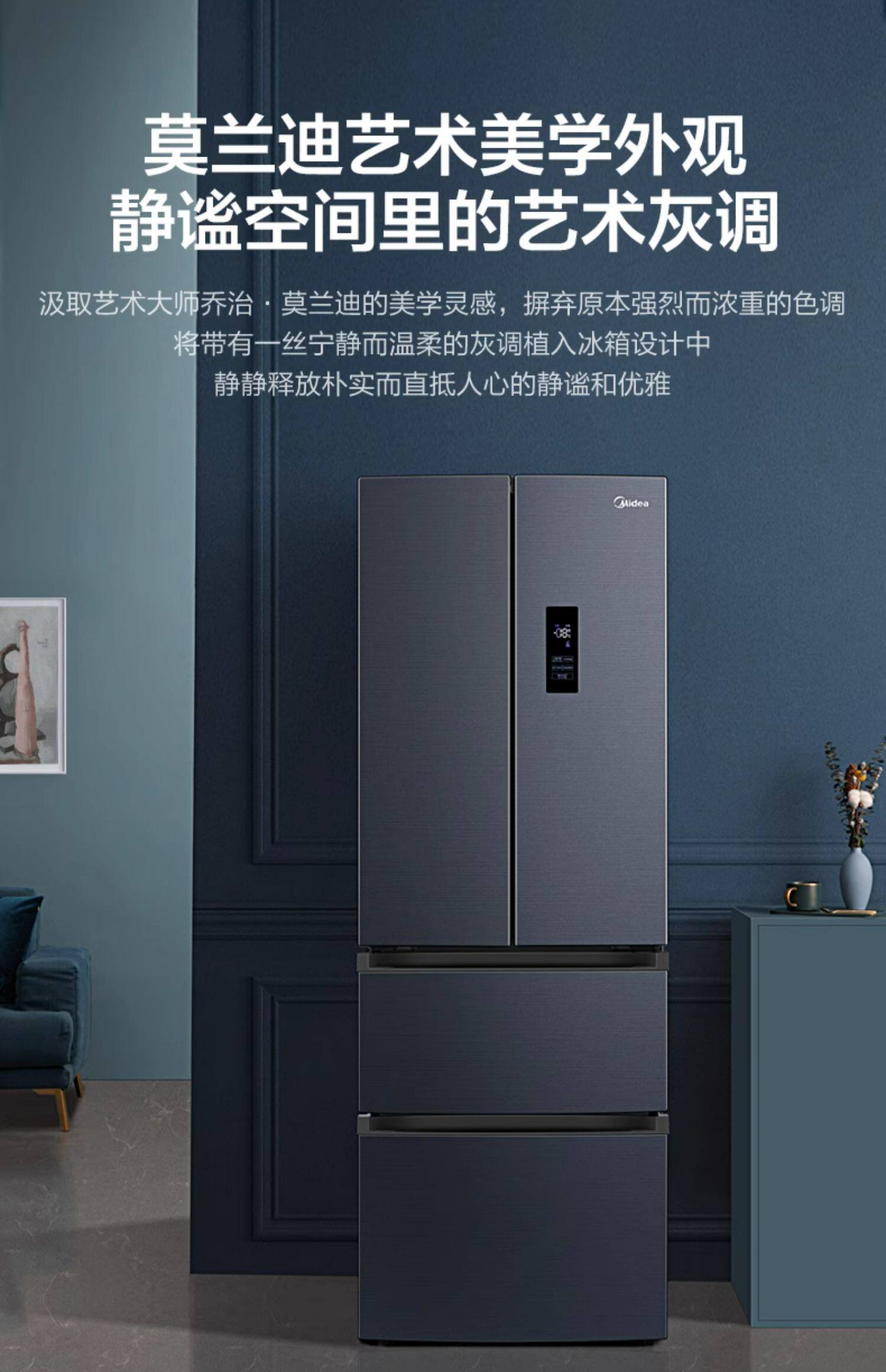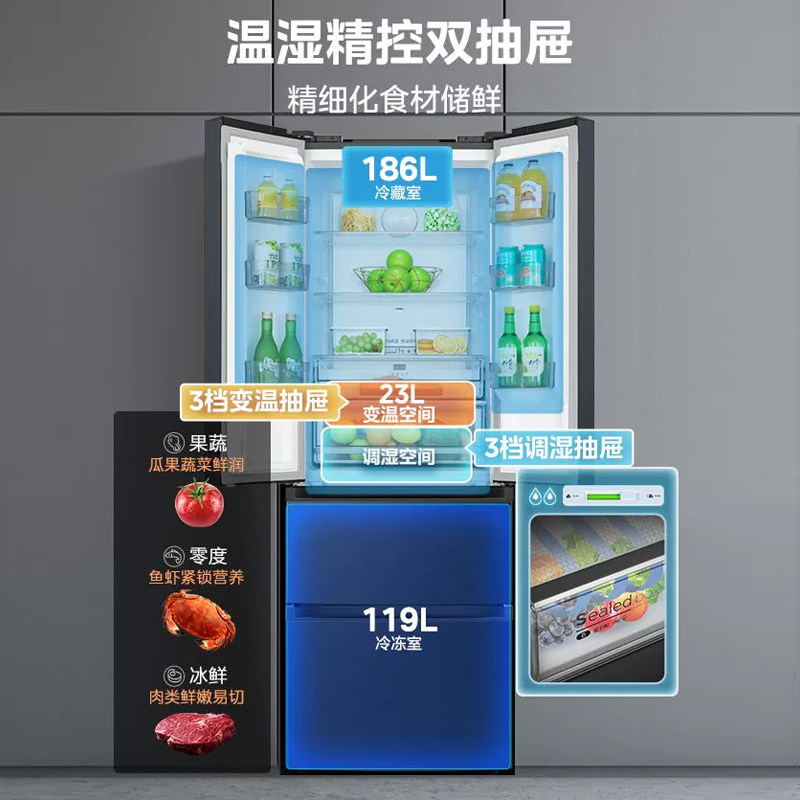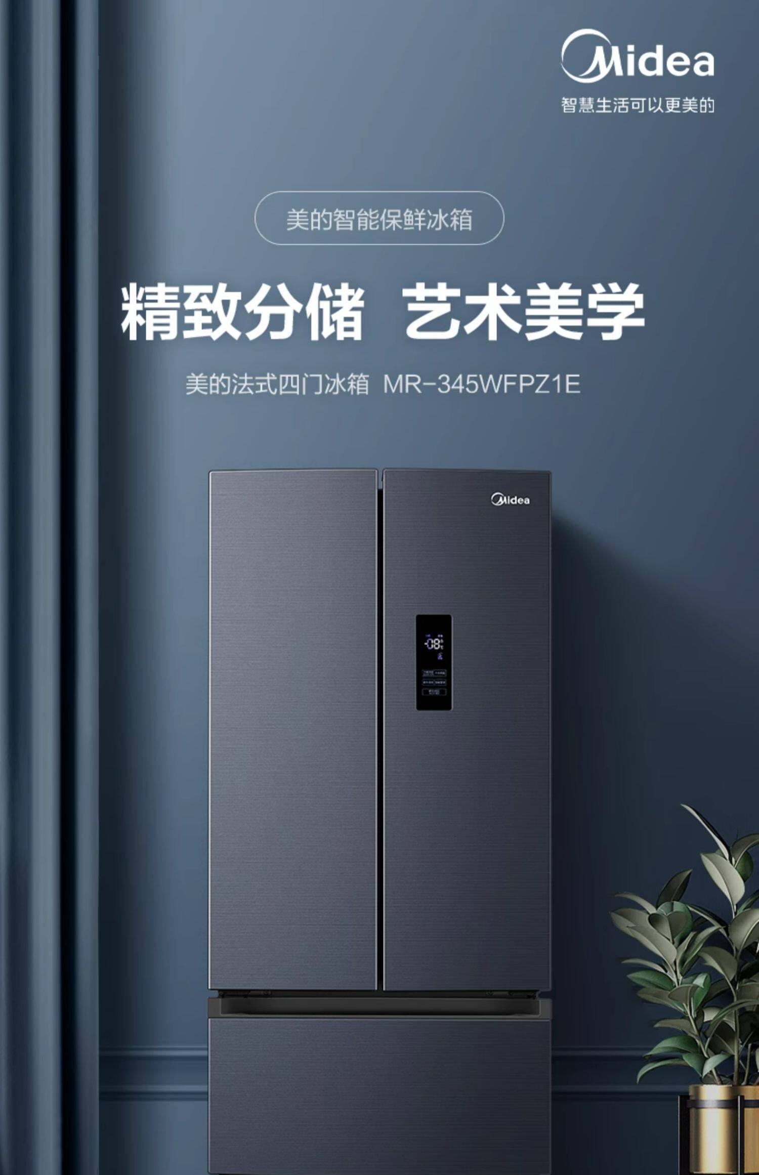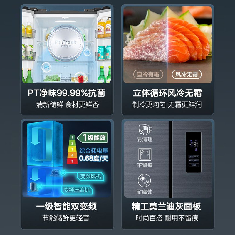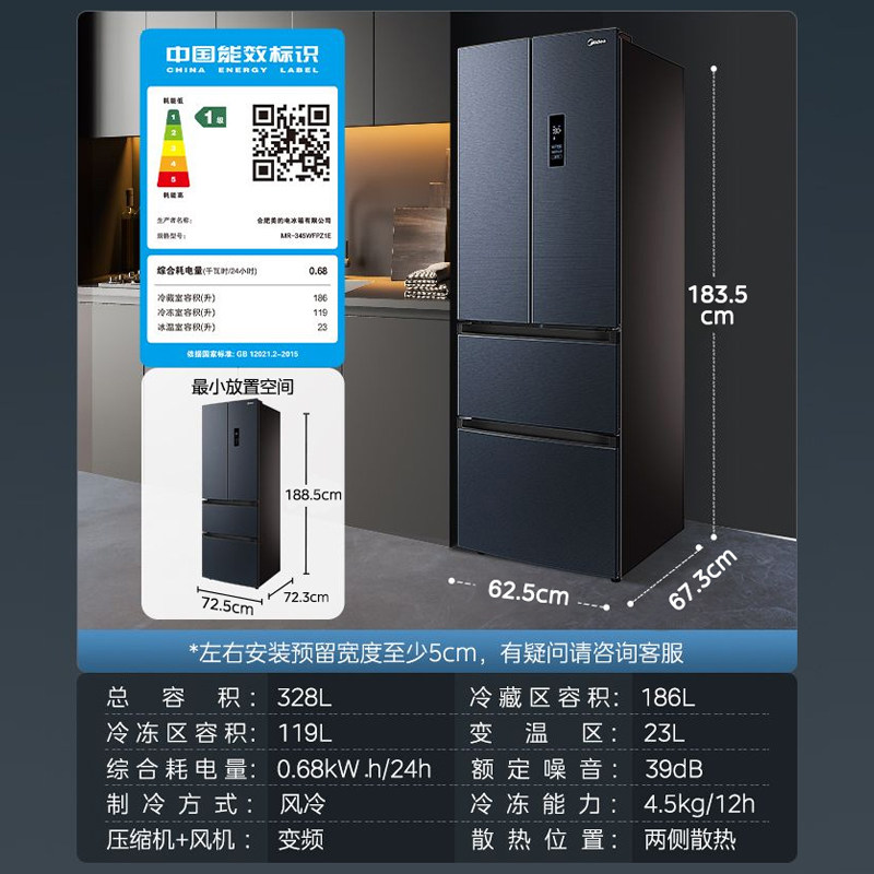 Медиа 345 Французская двухуровневая четырехвурная встроенная холодильника Ультра -тонкий домашний воздушный воздух -охлаждаемый