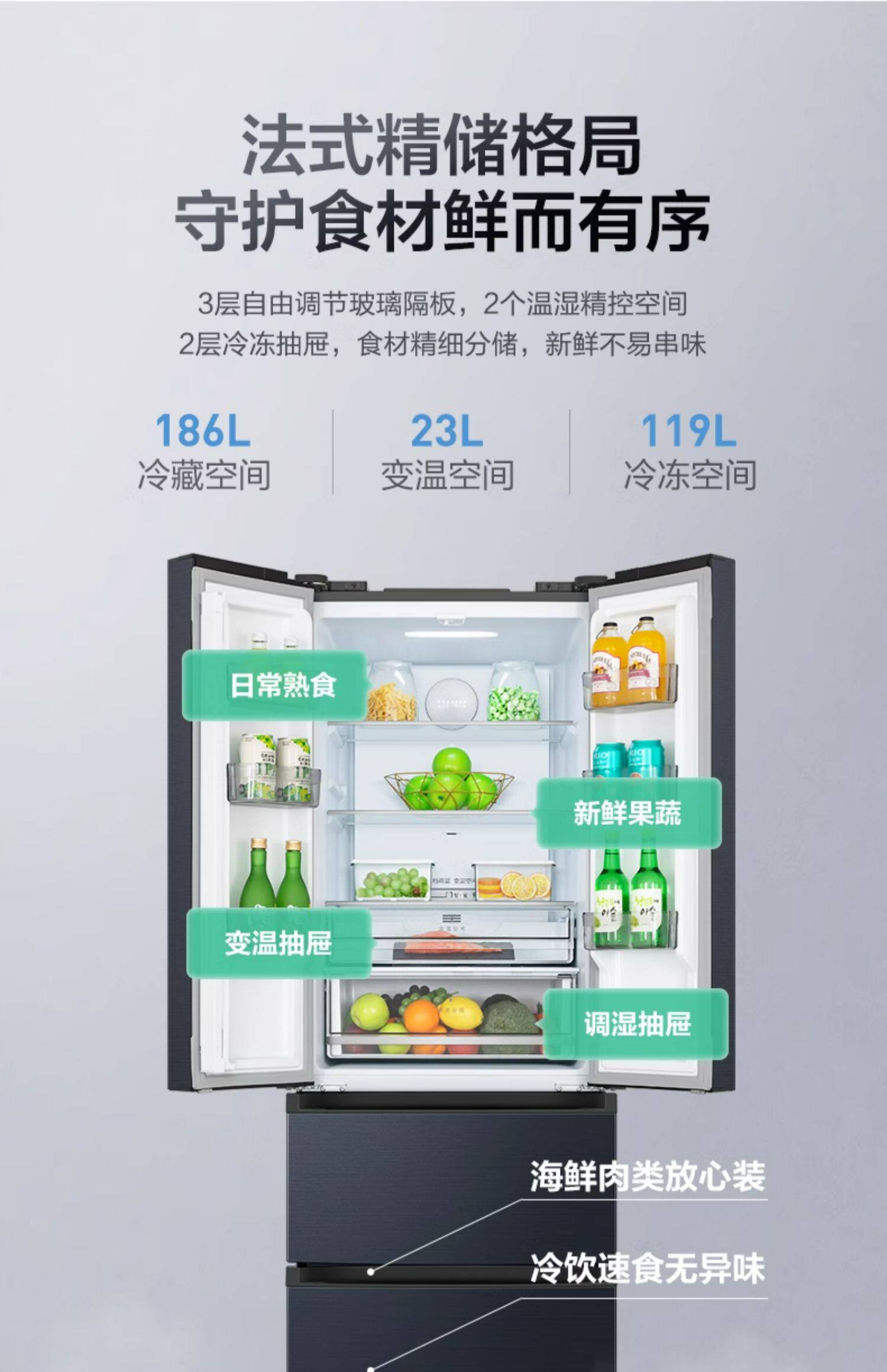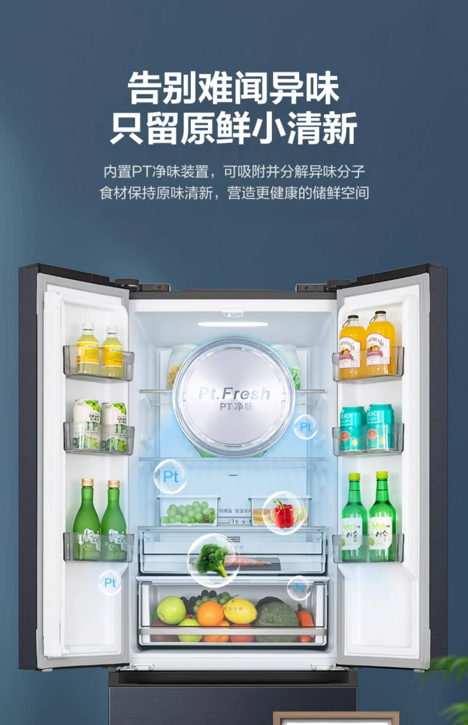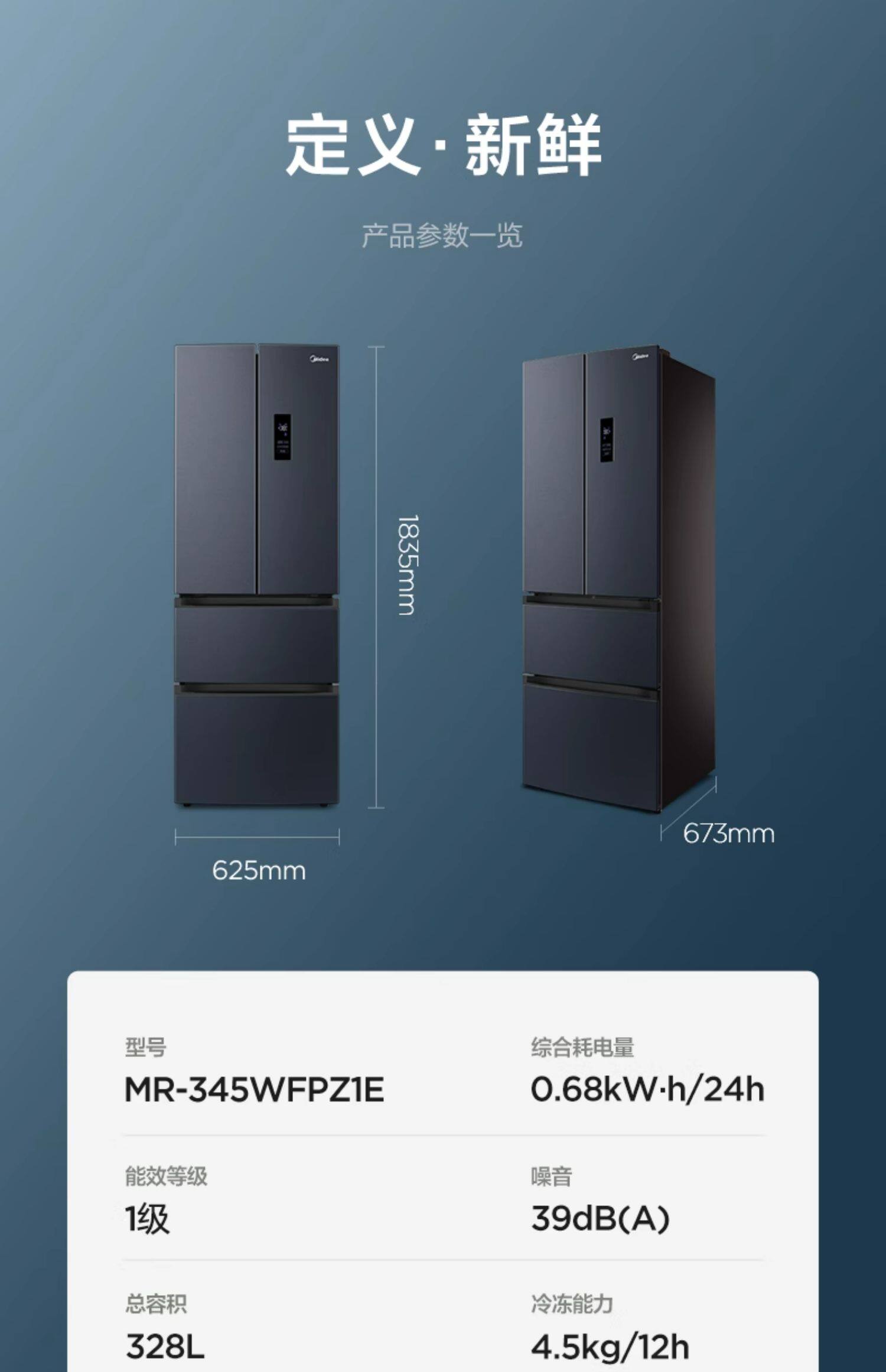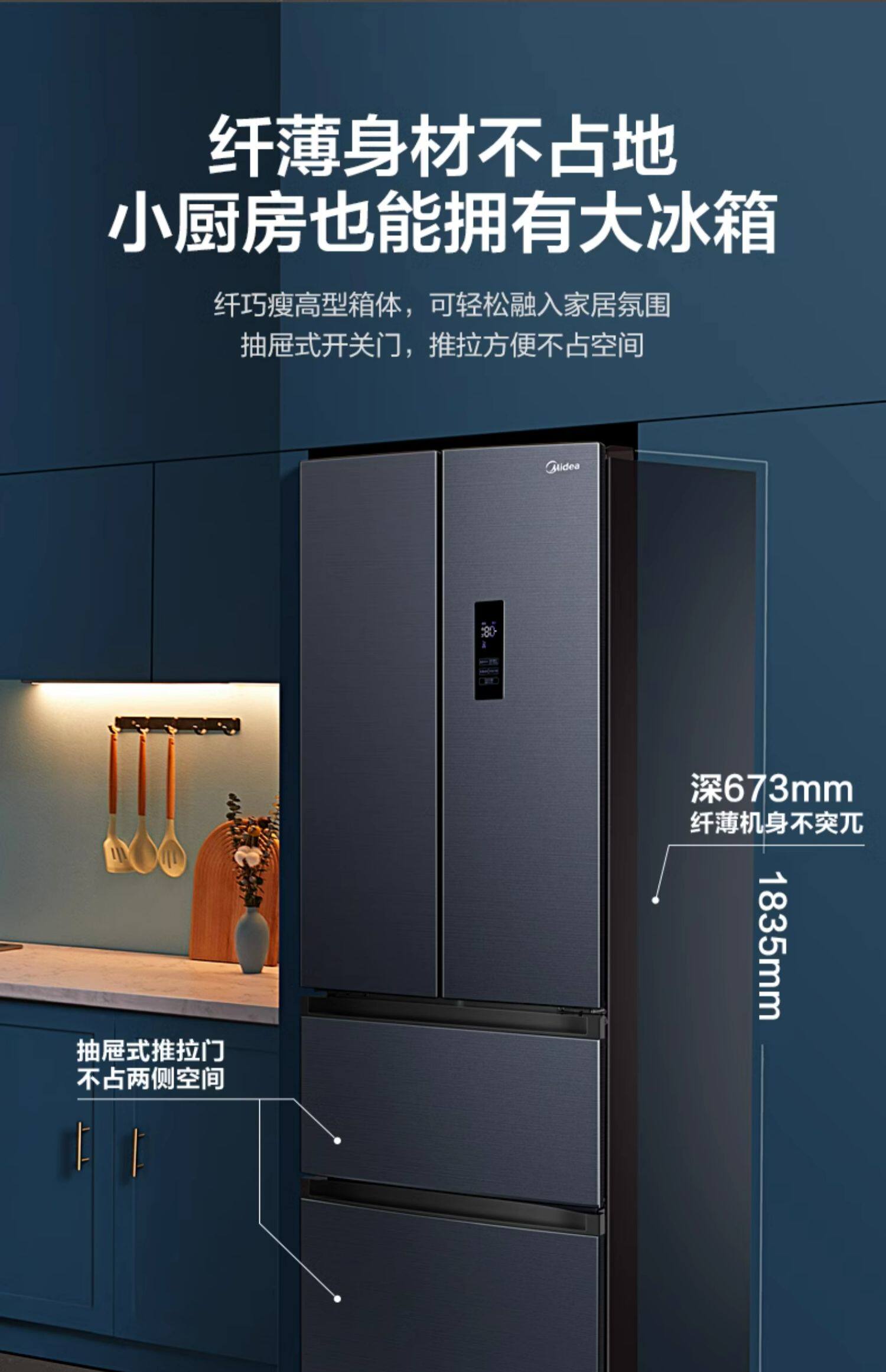 Медиа 345 Французская двухуровневая четырехвурная встроенная холодильника Ультра -тонкий домашний воздушный воздух -охлаждаемый