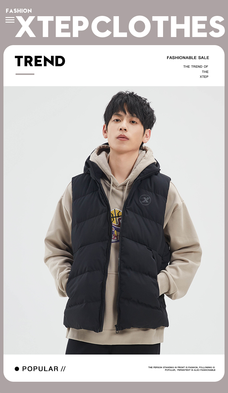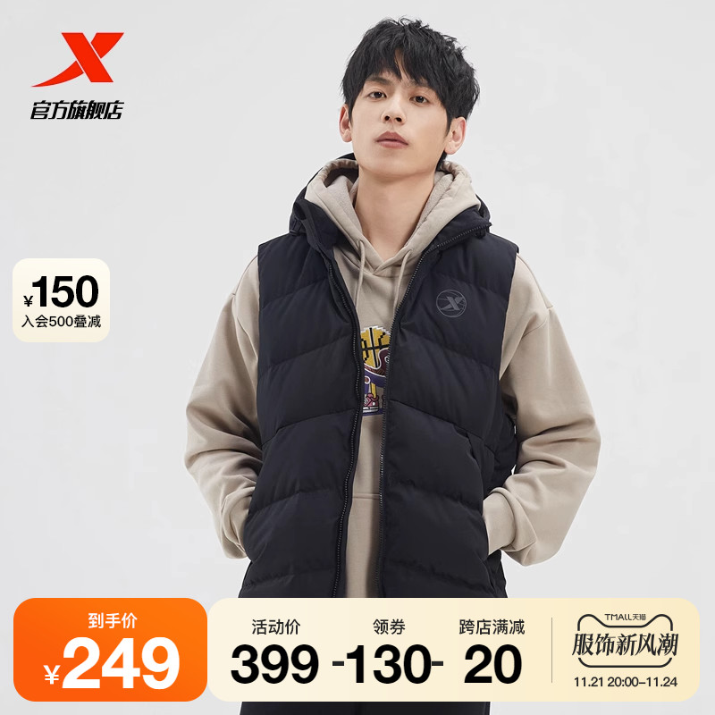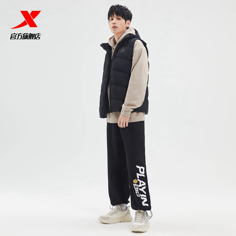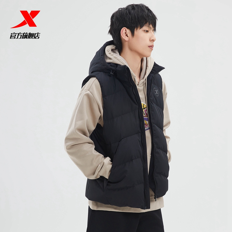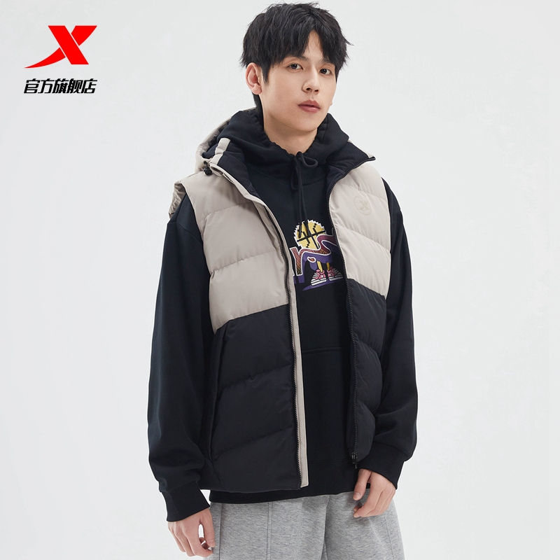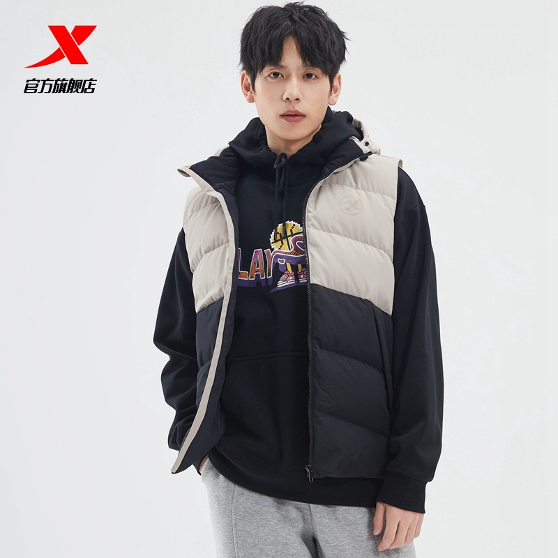 Xtep, спортивный демисезонный жилет с пухом, демисезонная бархатная толстовка с капюшоном, удерживающий тепло баскетбольный пуховик, утиный пух