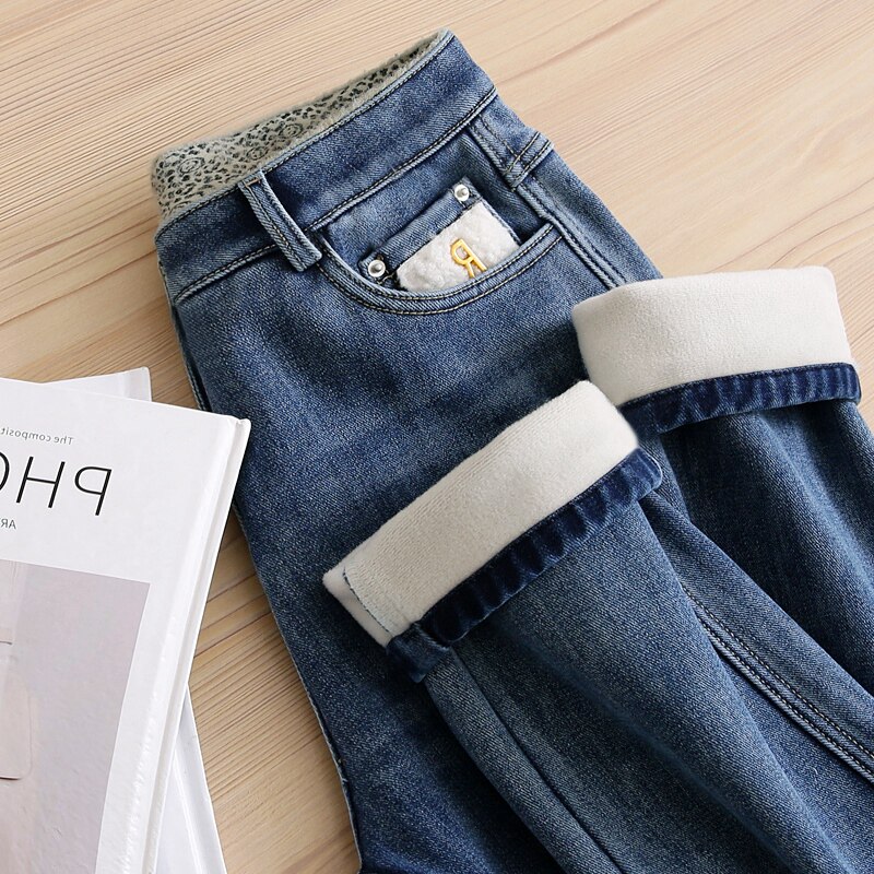 Зимние ретро демисезонные прямые свободные джинсы, утепленные штаны, французский стиль, подходит для подростков, популярно в интернете