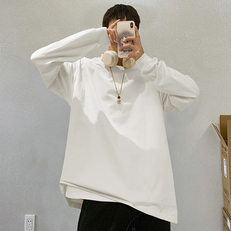 Хлопковый белый однотонный осенний базовый приятный телу лонгслив с круглым воротником