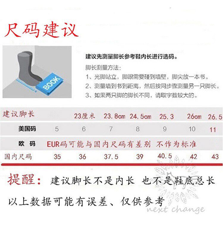 | Размер обуви: | 35 (США 5 ярдов), Рекомендуется 36 ярдов/США 6 ярдов, Рекомендуется 37 ярдов/США 6,5 ярдов, Предложение 37,5 ярдов/США 7 ярдов, Предложение 38 ярдов/США 7,5 ярдов, Рекомендуется 39 ярдов/США 8 ярдов, Рекомендуется 40 ярдов/США 8,5 ярдов, Рекомендуется 40,5 ярдов/США 9 ярдов, Рекомендуется 41 ярды/США 9,5 ярдов, Рекомендуется 42 ярда/красота 10 ярдов, Рекомендуется 43 ярда/США 11 ярдов |