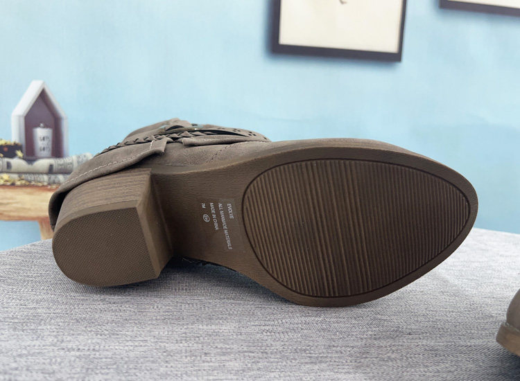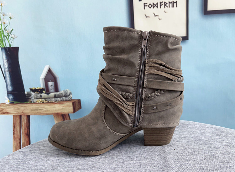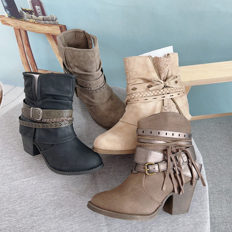 Женские сапоги для внешней торговли в Европе и Америке, размер 42, модные одиночные ботинки до середины икры с кисточками на толстом каблуке, на высоком каблуке с боковой молнией и острым носком, черные