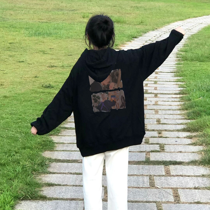 Ретро черная толстовка с капюшоном, осенний флисовый лонгслив, коллекция 2023