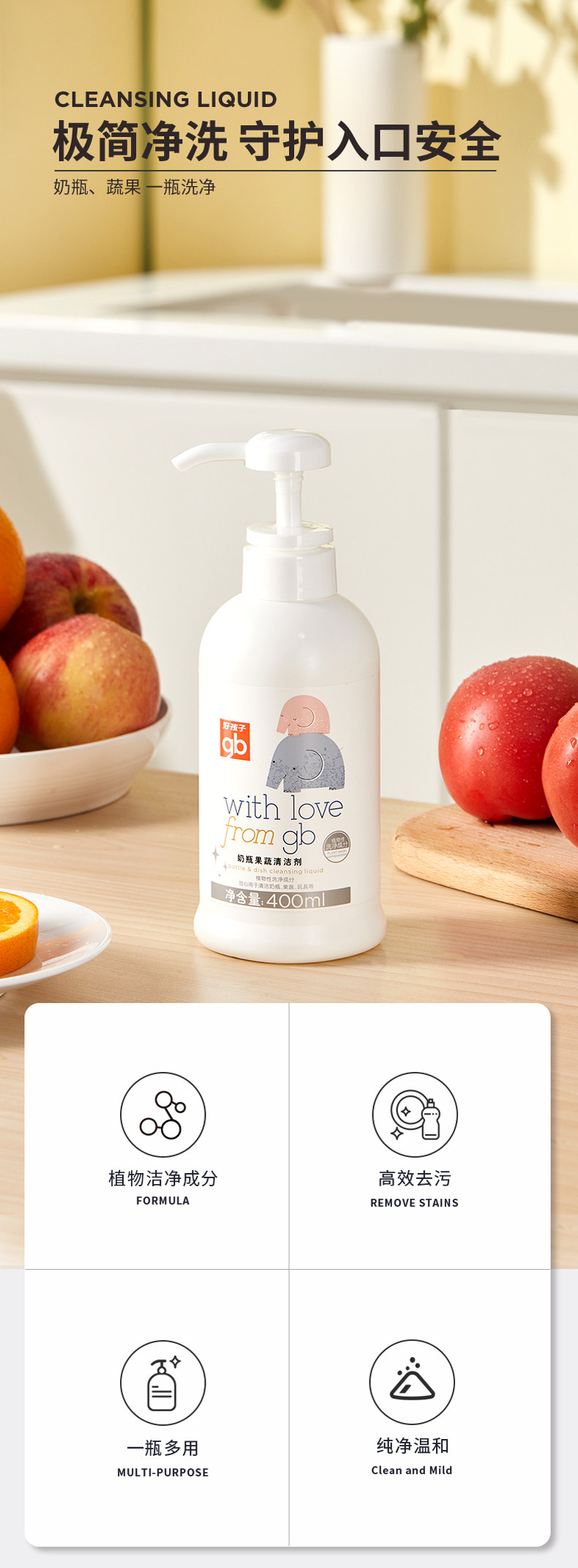 Моющее средство для бутылочек, чистящее средство, бутылочка для кормления для фруктов и овощей