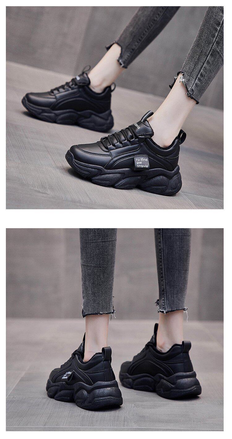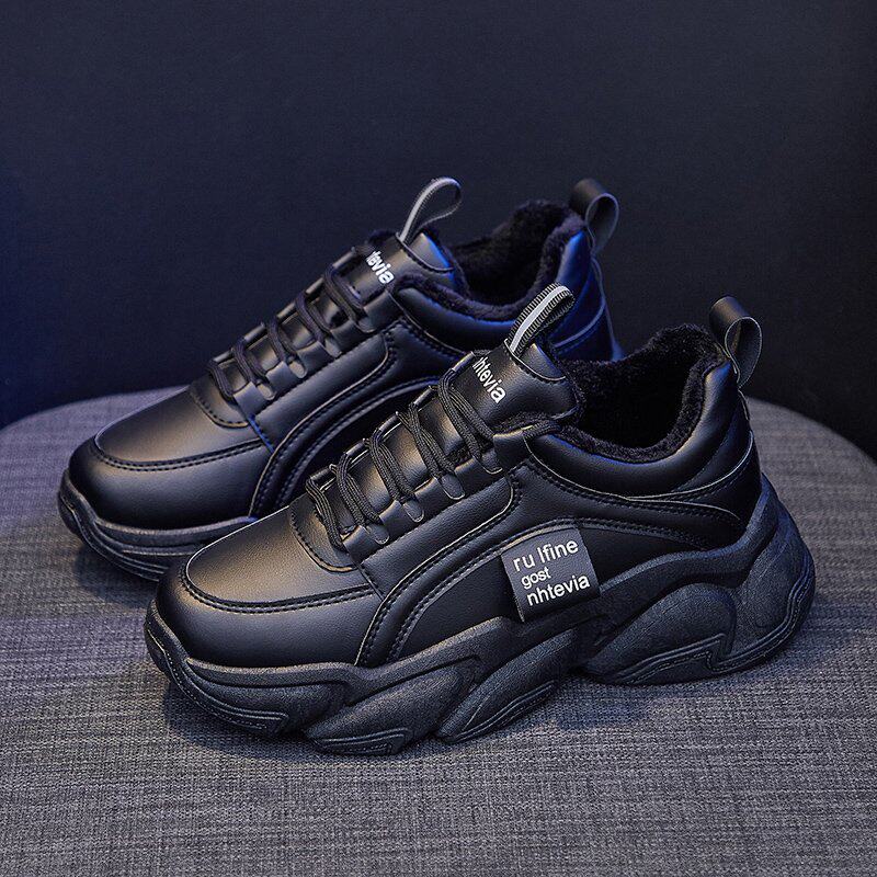 Рабочая обувь для женщин, черная нескользящая кухонная обувь, длительное стояние без усталости ног, водонепроницаемая обувь KFC на мягкой подошве осенью и зимой, а также бархатные хлопчатобумажные туфли.